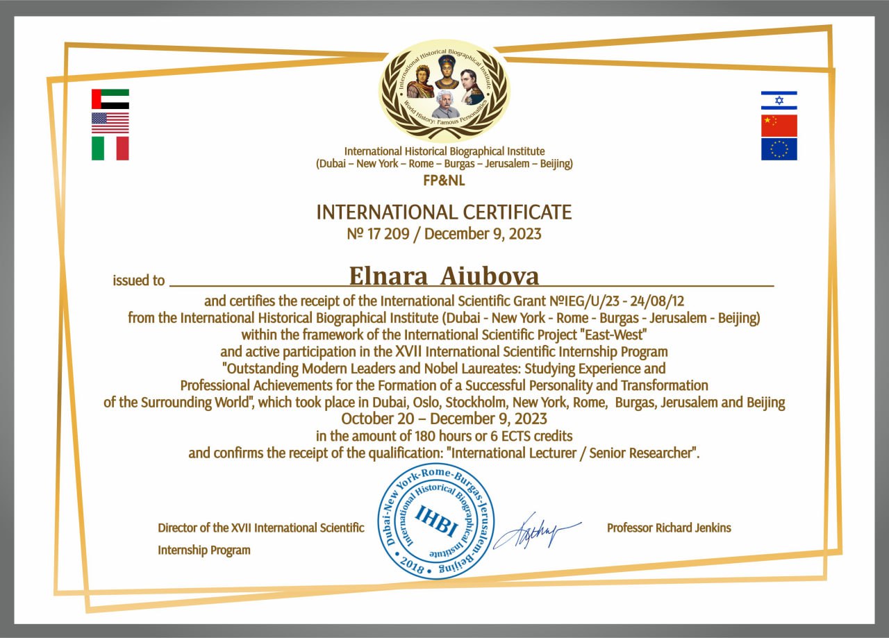 International Historical Biographical Institute (Dubal-New York-Rome-Burgas-Jerusalem – Beijing) |