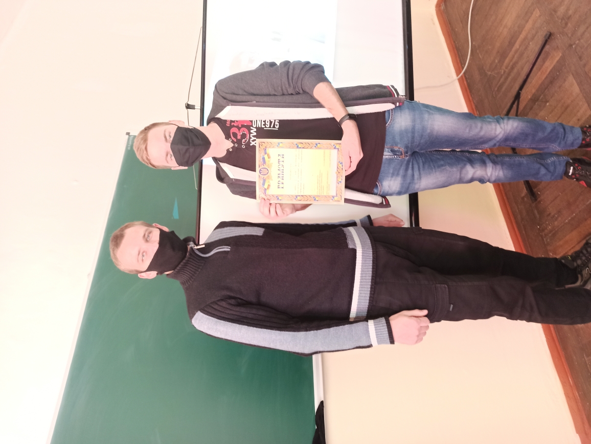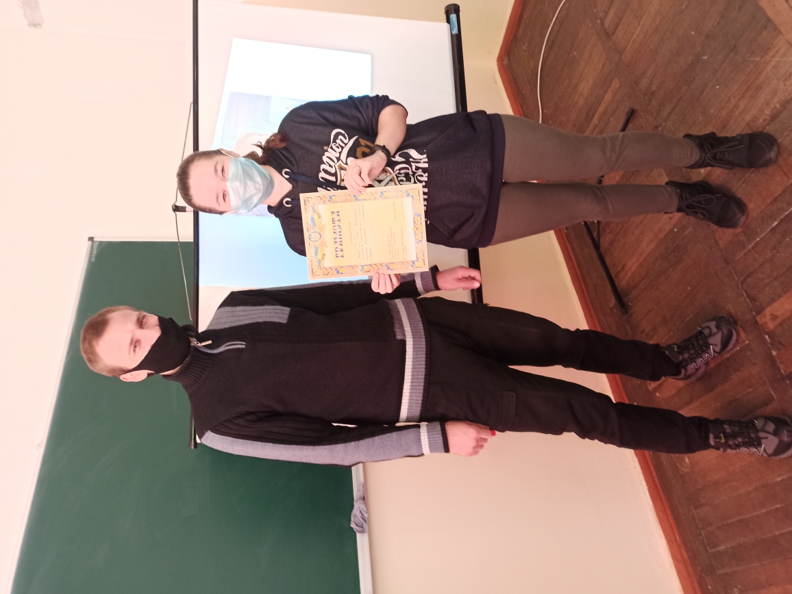 (Випускник Стеценко Владислав долучається до нагородження здобувачів вищої освіти за результатами участі у фотоконкурсі, що проводиться в рамках тематичного спрямування дисципліни «Проведення популяційних та біоценотичних досліджень»)