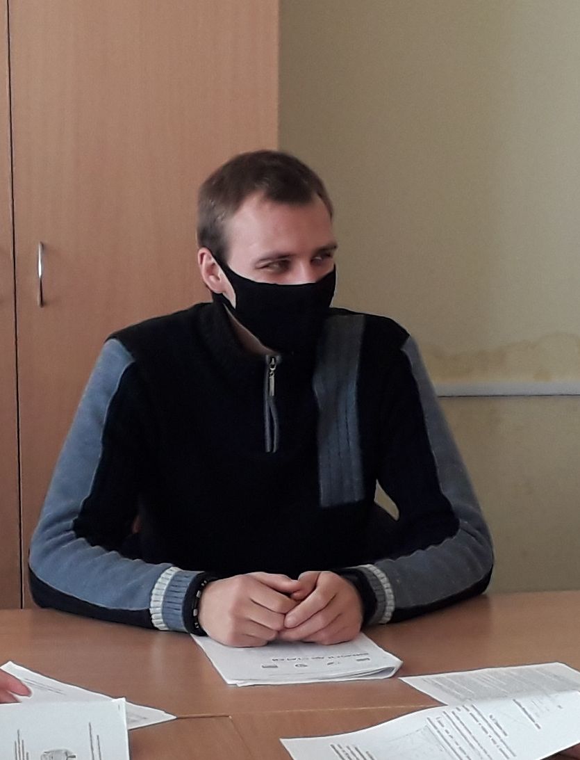 (Випускник ТДАТУ Моісеєнко Антон Олександрович, який у 2015 році здобув ступінь магістра (кваліфікація «Еколог-дослідник») проводить тематичний захід присвячений питанням пожежної безпеки у освітньому просторі).
