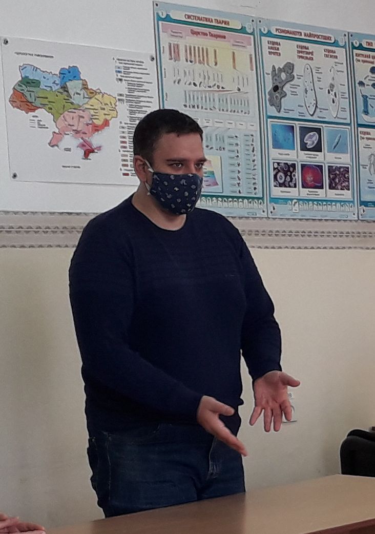 Сумісник кафедри асистент АНТОНОВСЬКИЙ Олександр, який за основним місцем роботи посідає посаду заступника начальника наукового відділу Приазовського національного природного парку розповів про практичний блок підготовки здобувачів та успішний досвід залучення професіоналів-практиків до освітнього процесу на ОПП.