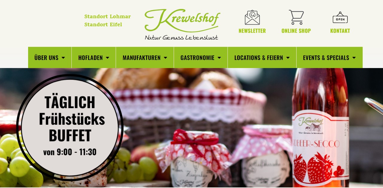 Фермерське господарство була засноване у 1934 році. Дорожня карта сучасного агро-комплексу розпочинається з родинного захопленням фермерським господарством. Отримавши батьківський спадок у 1990-х роках Bauer Theo зрозумів, що м’ясне скотарство, виробництво яєць і пшениця більше не мають майбутнього. Відповідно виробництво було зорієнтоване на вирощування фруктів і овочів, смачної спаржі, найкращої картоплі, гарбузів та некроплених різдвяних ялинки. Господарство не використовує запилювачі і робимо акцент на природність і стійкість. У 2000 році на фермі з’явились кози та сироварня з Krewelshof Köln/Lohmar. Трохи згодом до мануфактури додалися кондитерський цех та пекарня, цех по переробці плодів та лікарських трав. Фермерське кафе Krewelshof Eifel відчинило свої двері у 2014 році. Активно розвивається зелений туризм, пропозиції проведення різноманітних заходів та святкування особливих подів, на різдвяні свята відкривається ковзанка, працює до кінця зимового періоду.