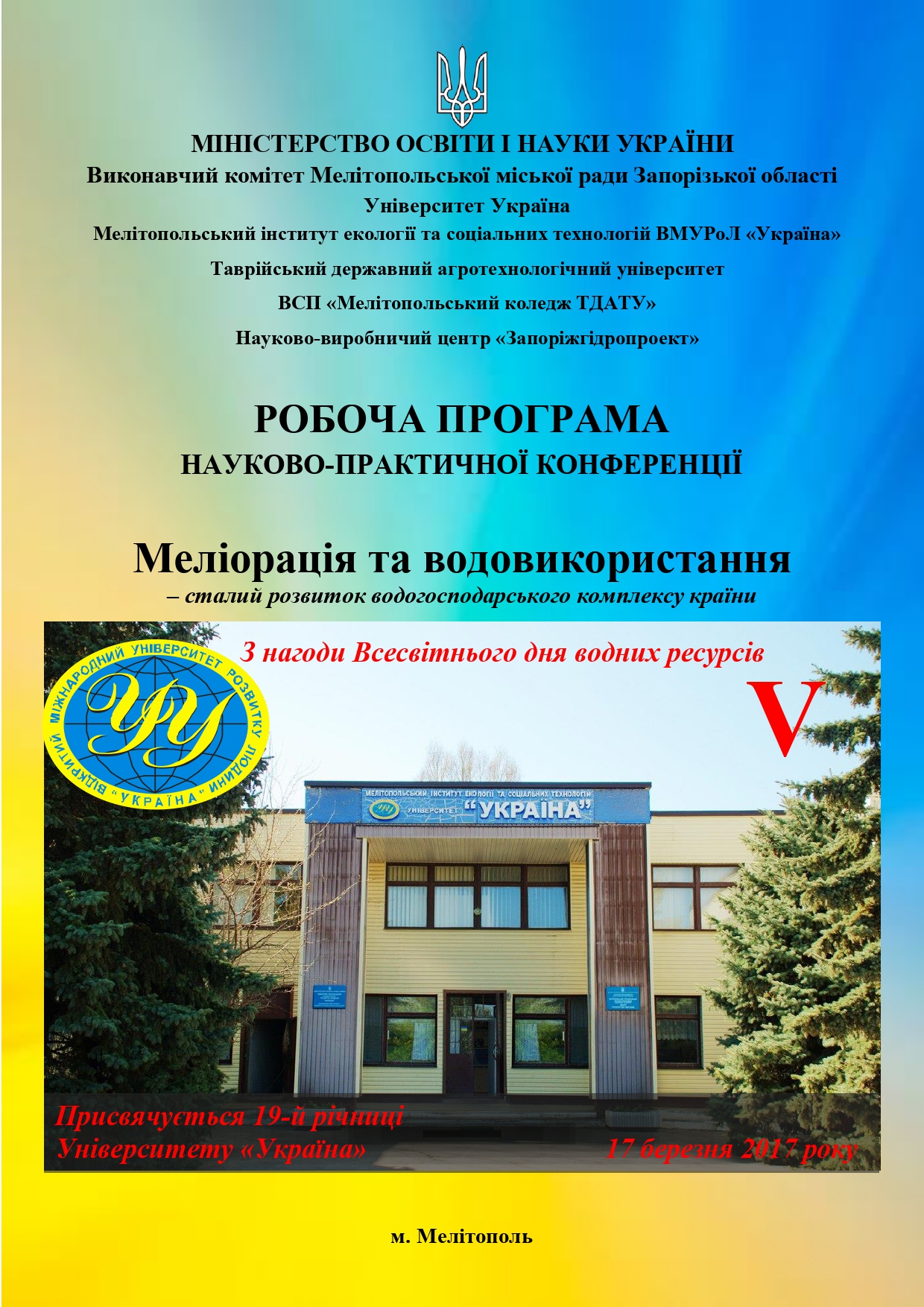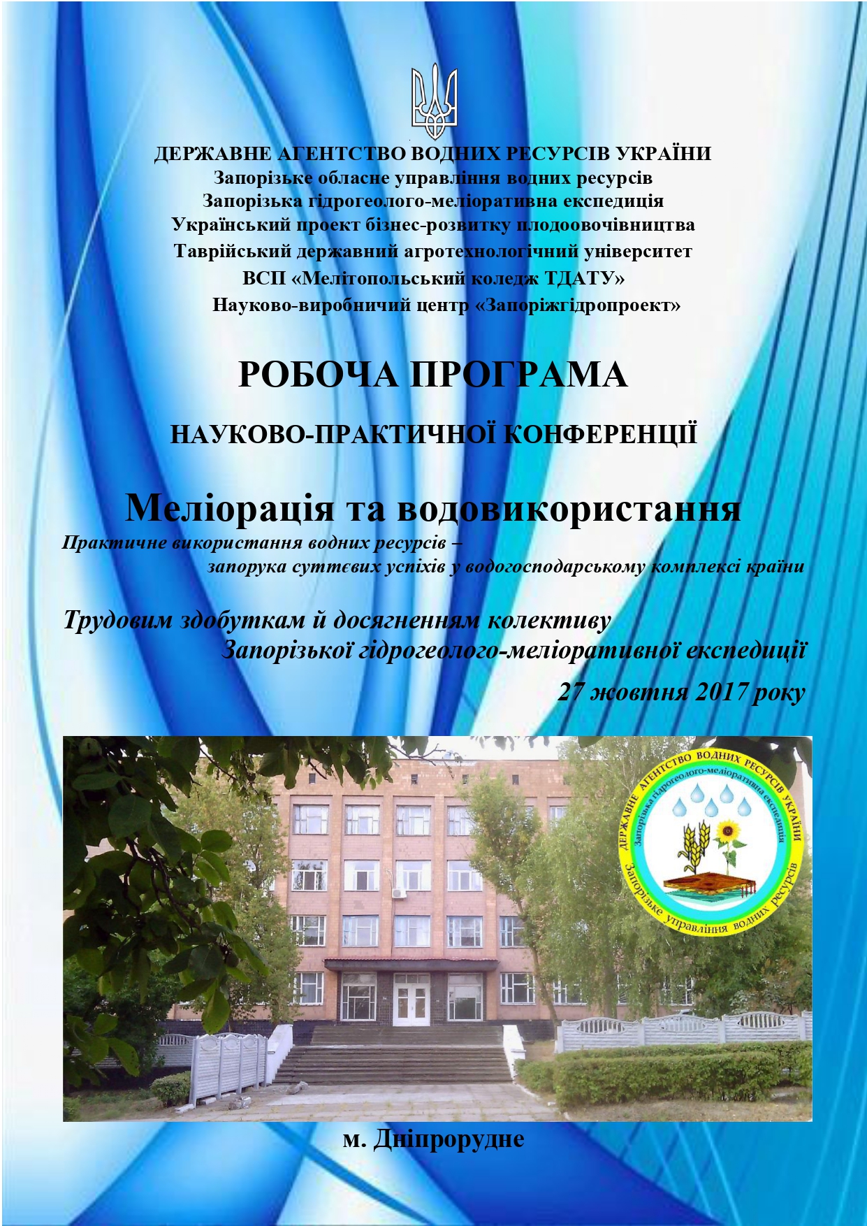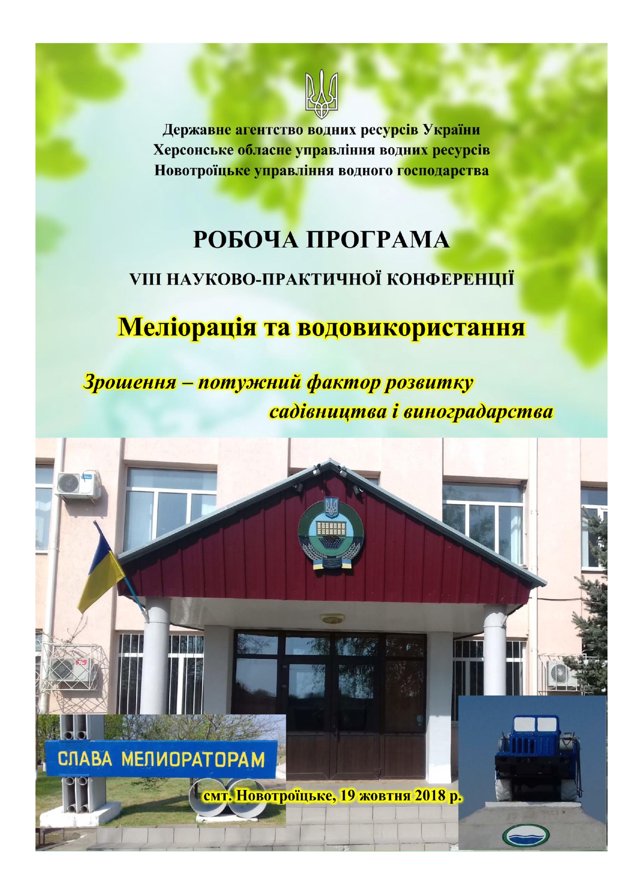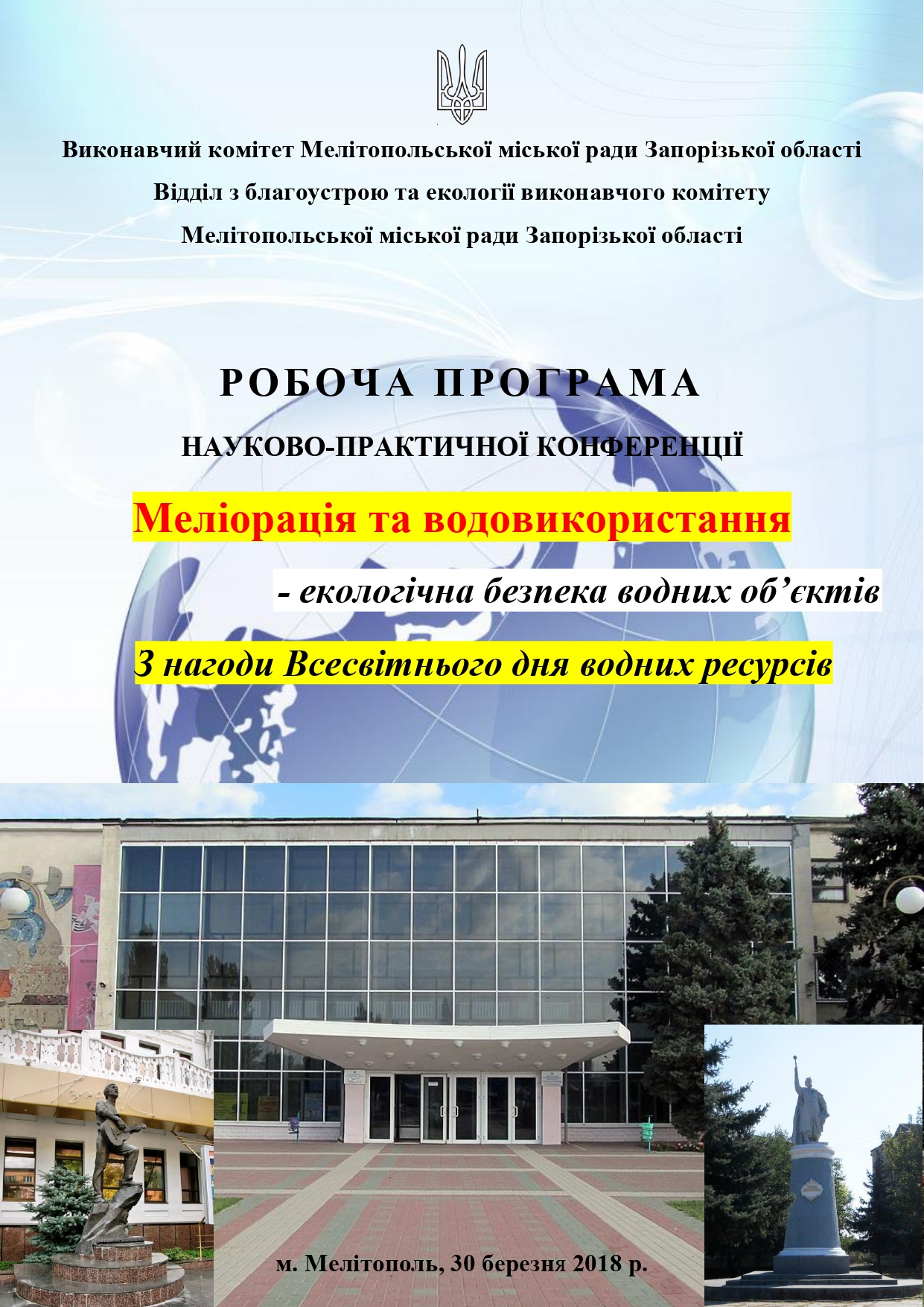Робоча програма науково-практичної конференції “Меліорація та водовикористання – екологічна безпека водних ресурсів”