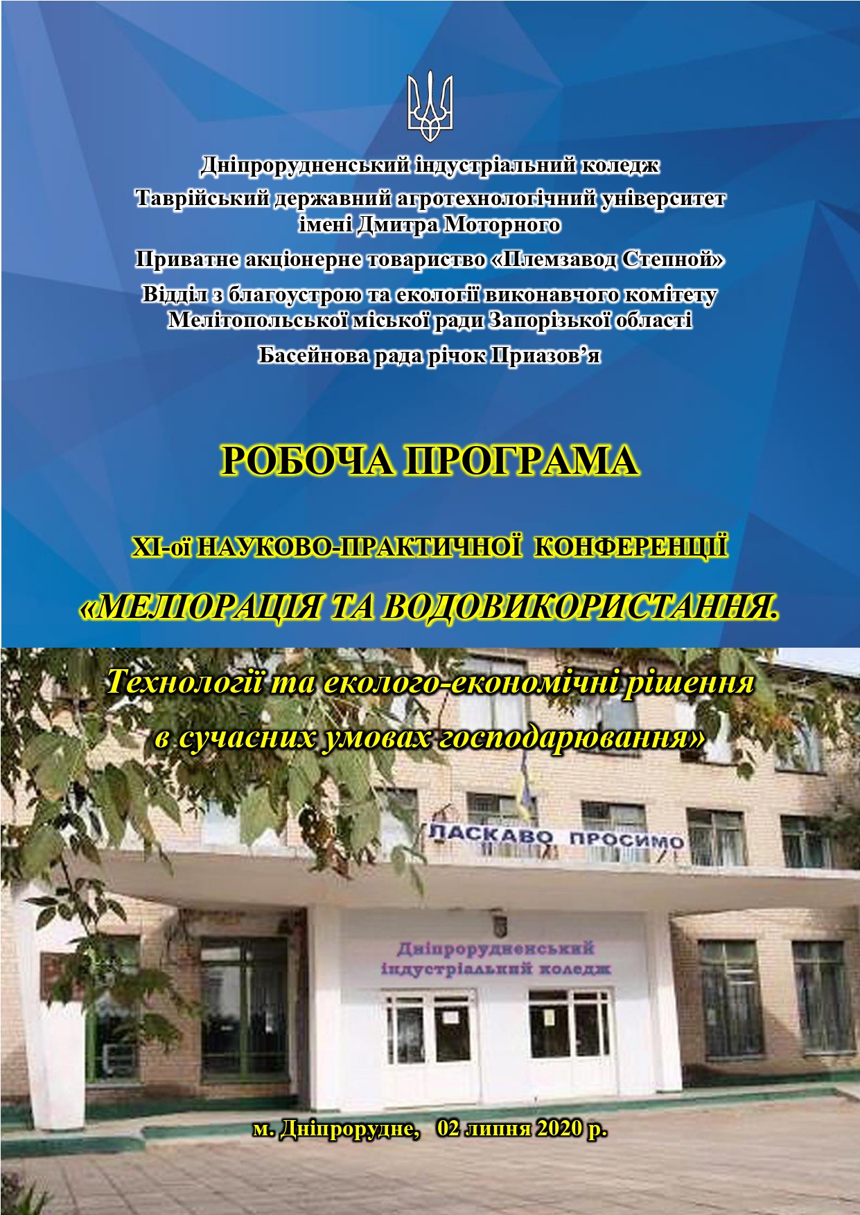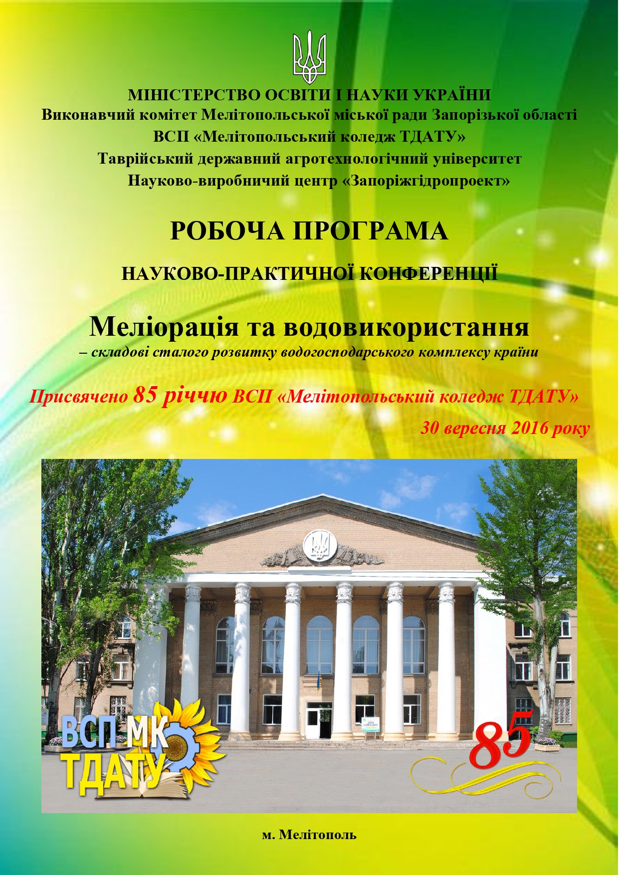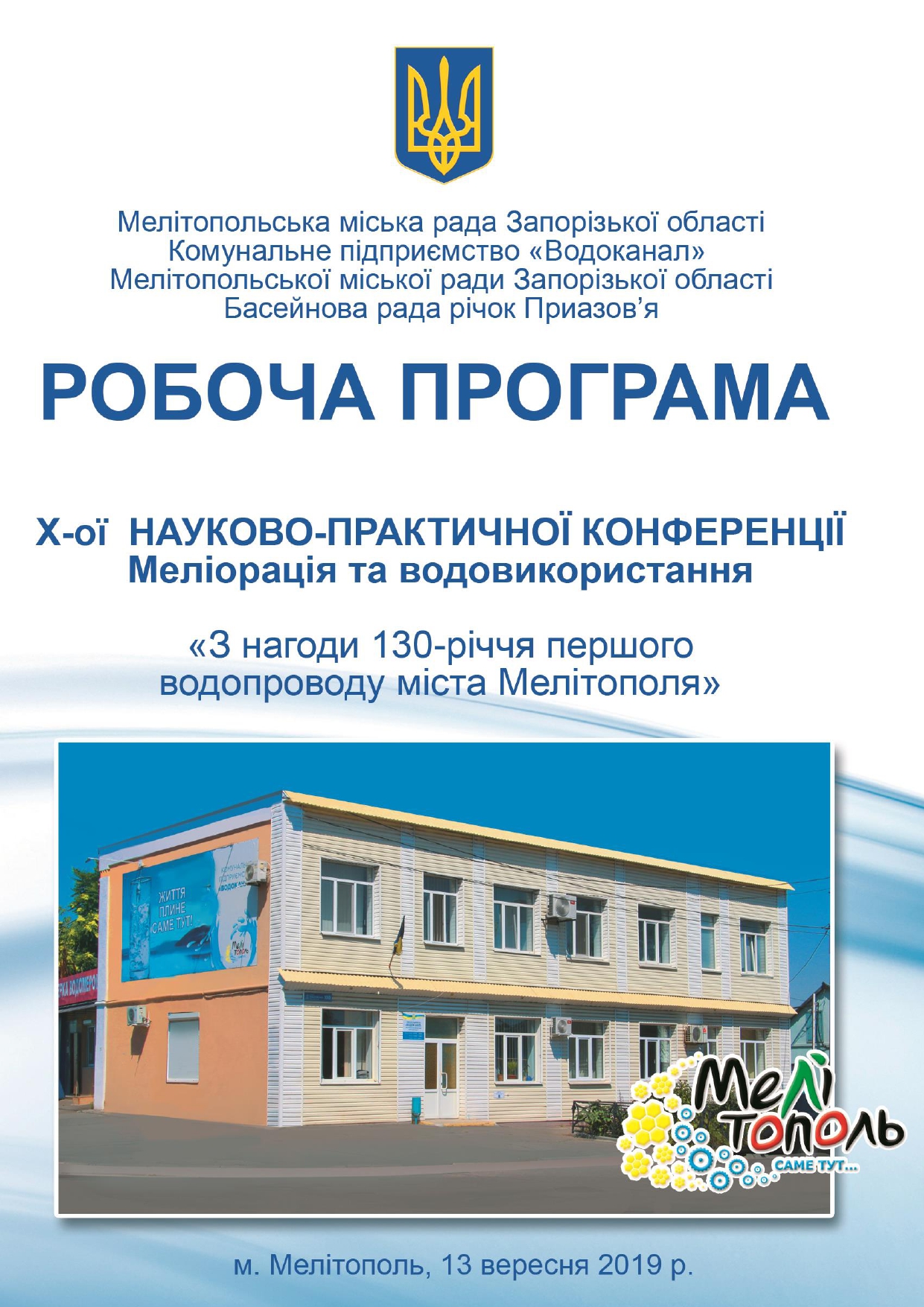Робоча програма Х-ої науково-практичної конференції Меліорація та водовикористання “З нагоди 130-річчя першого водоводу міста Мелітополя”