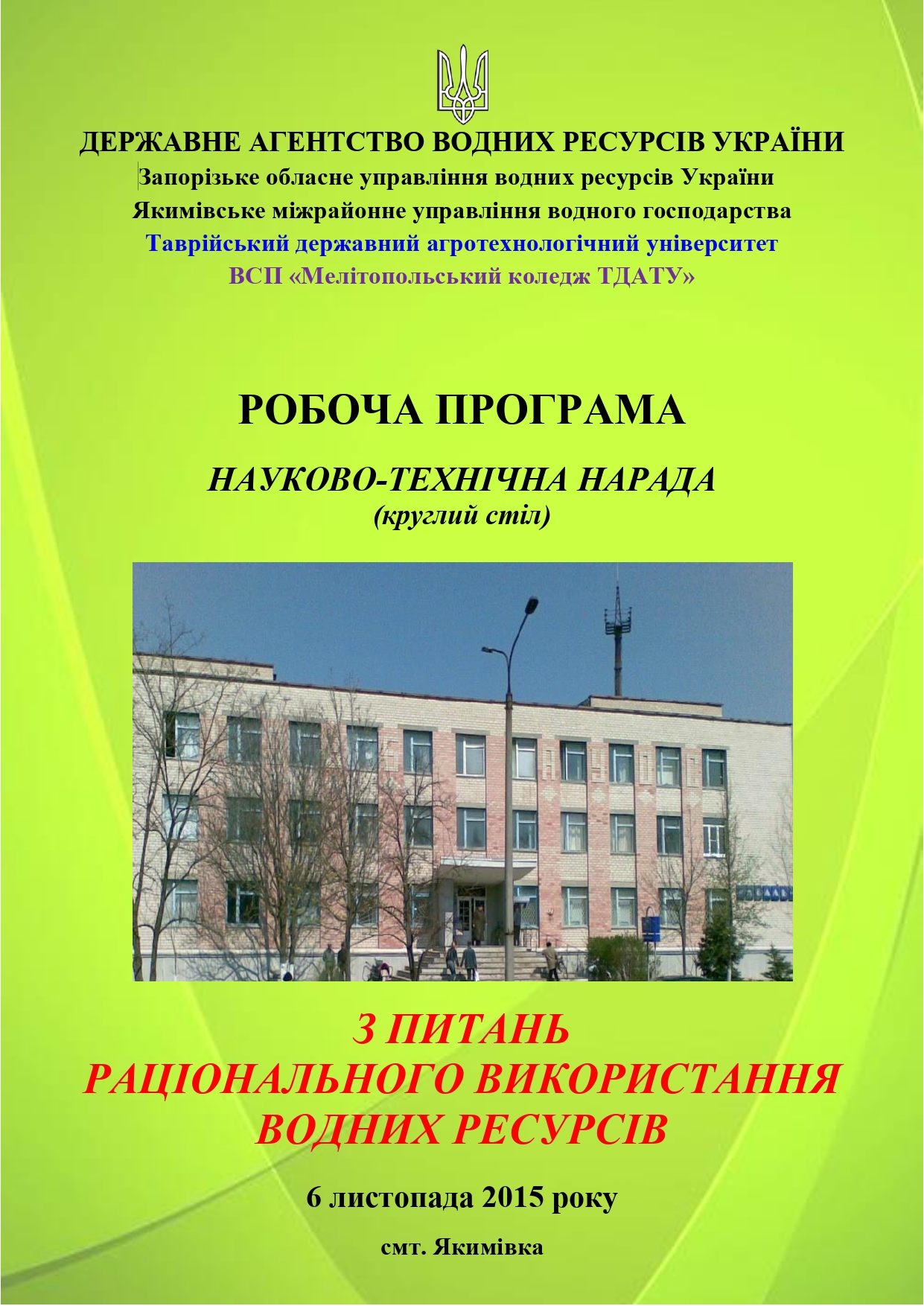 Робоча програма науково-технічної наради (круглого столу) з питань раціонального використання водних ресурсів