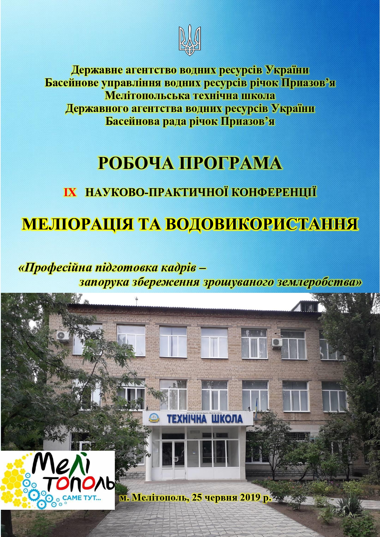 Робоча програма ІХ науково-практичної конференції Меліорація та водовикористання “Професійна підготовка кадрів – запорука збереження зрошуваного землеробства”