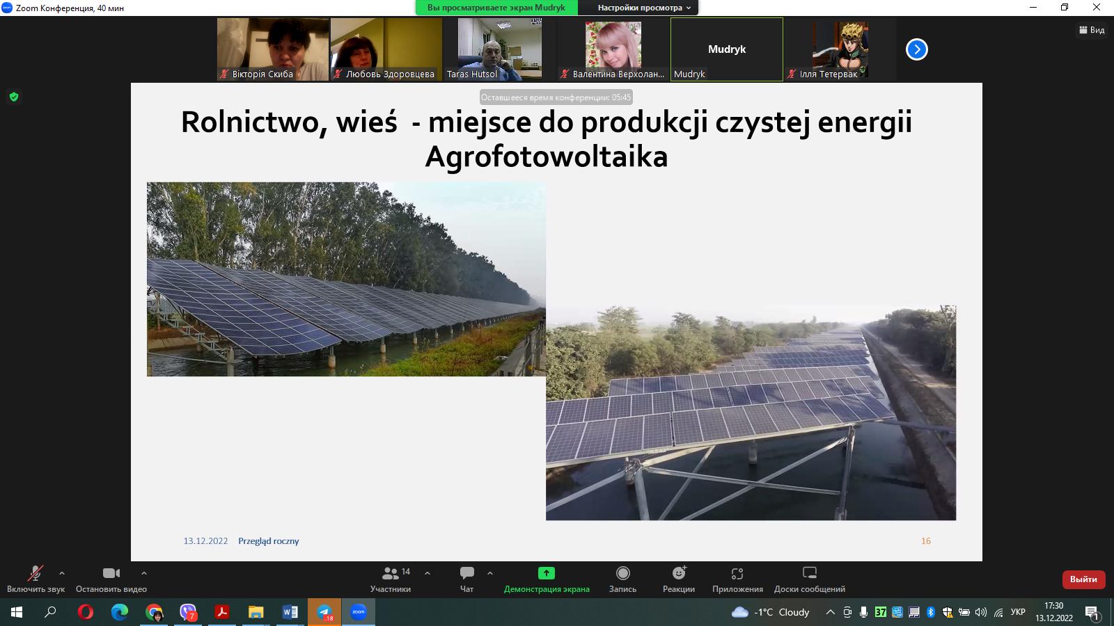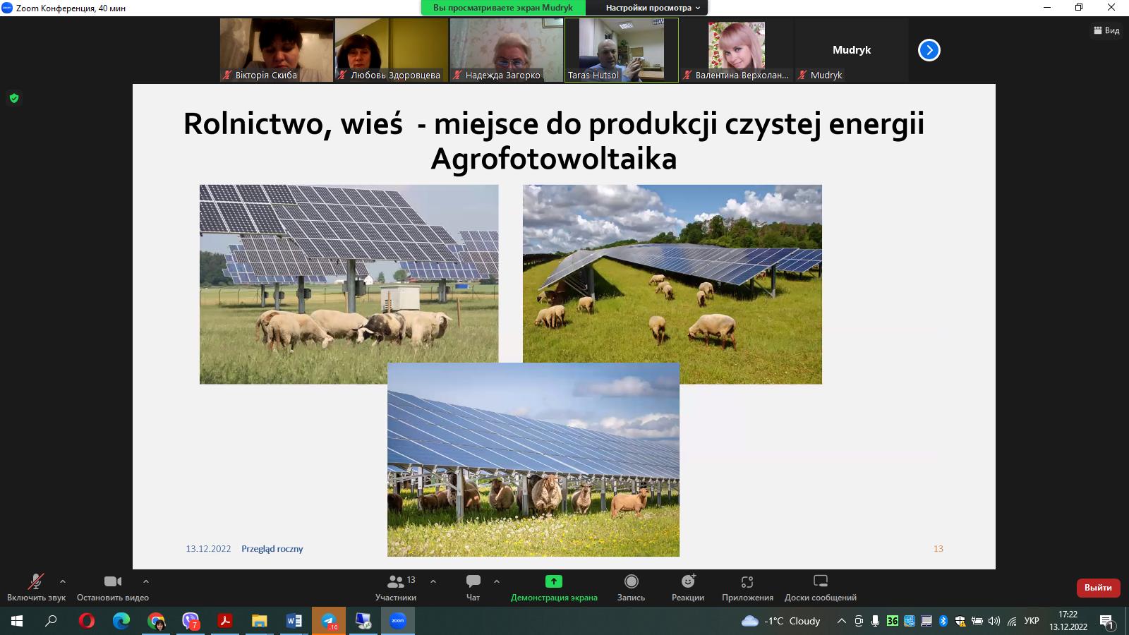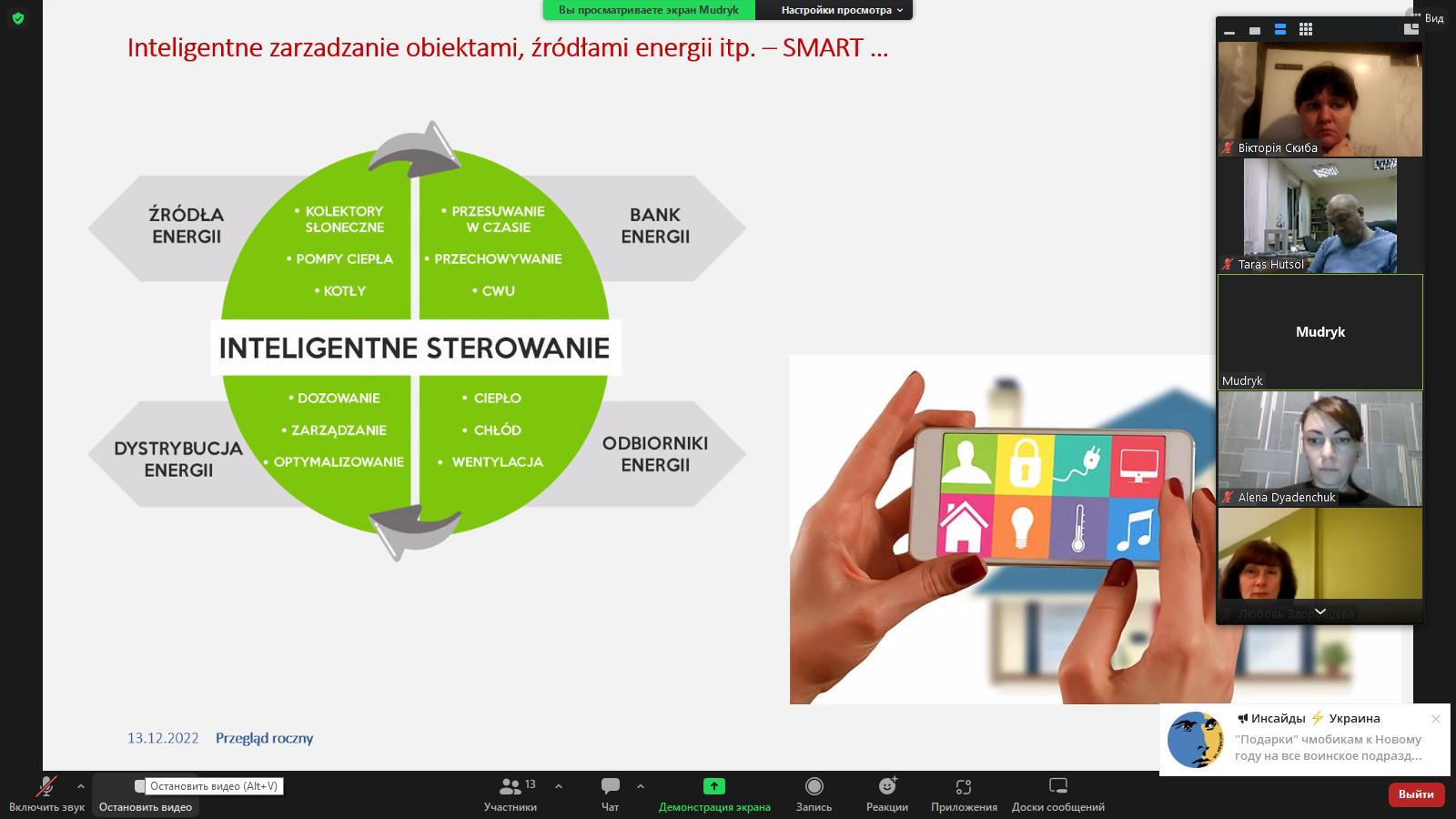 Наприкінці грудня 2022 року науково-педагогічні працівники ТДАТУ мали змогу долучитись до онлайн-стажування: «Еuropean green deal: innovations, engineering, food safety», яке проходило на базі University of agriculture in Krakow (Краків, Польща).