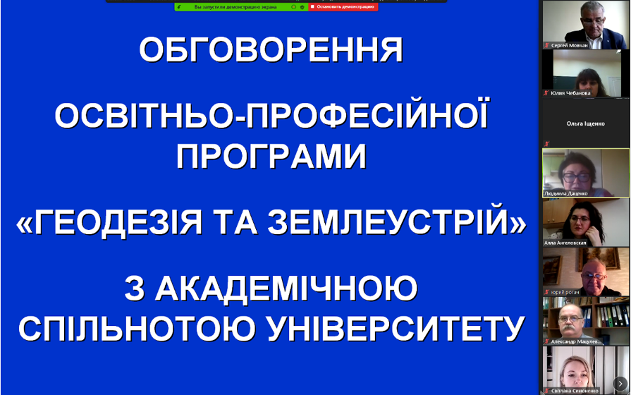 Метою зустрічі було обговорення академічною спільнотою університету питання про необхідність модернізації освітньо-професійної програми та корегування навчального плану зі спеціальності 193 «Геодезія та землеустрій» першого (бакалаврського) рівня вищої освіти.