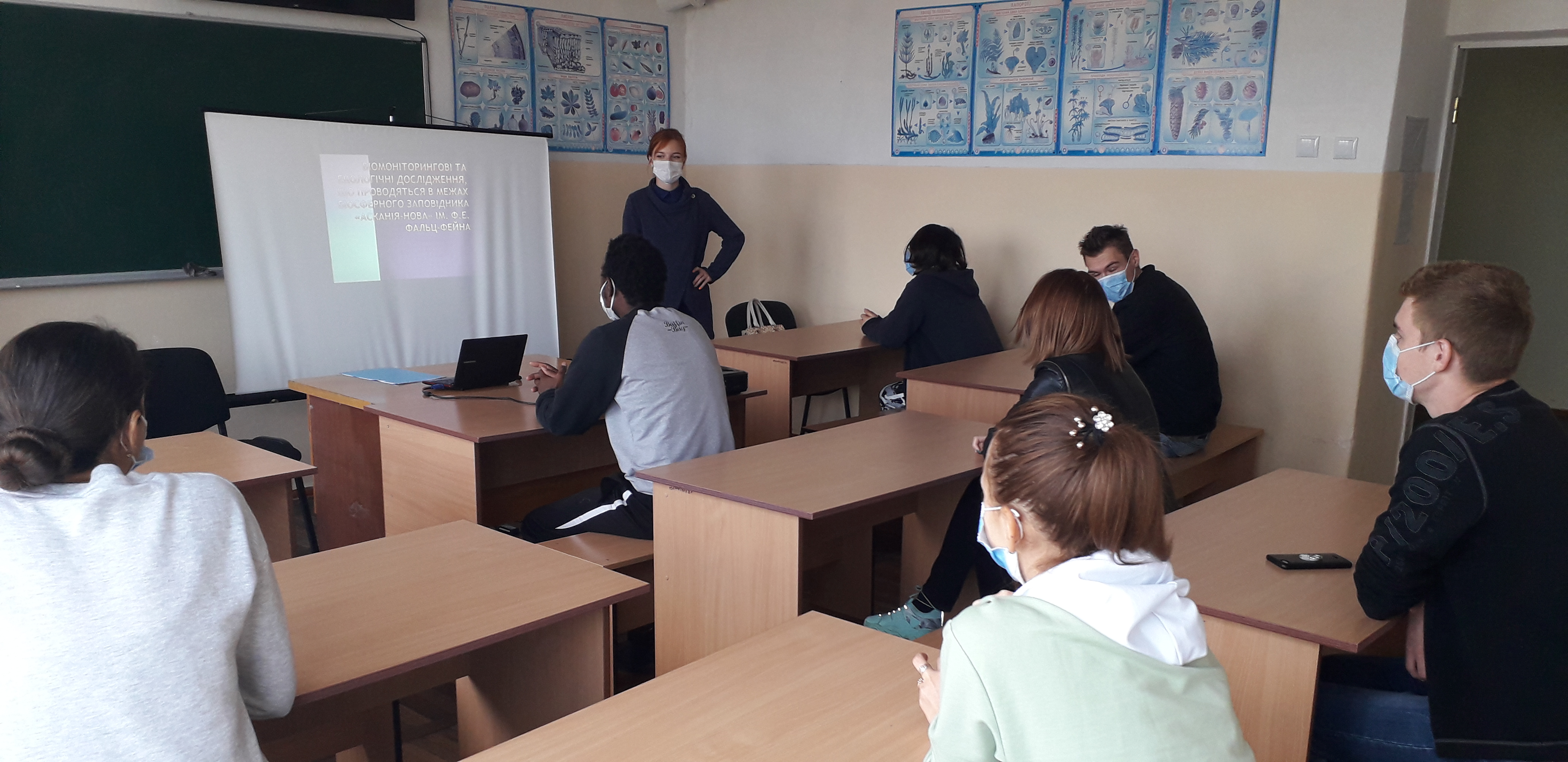 1) Проведення заняття з дисципліни «Наукова і освітня діяльність в заповідних територіях» к.б.н., доцентом кафедри Щербиною Валентиною Вікторівною на базі філії кафедри, що знаходиться на території Приазовського національного природного парку з метою визначення прикладних аспектів наукової та освітньої діяльності установи із залученням до проведення заняття начальника наукового відділу Барабохи Наталі Миколаївни.
