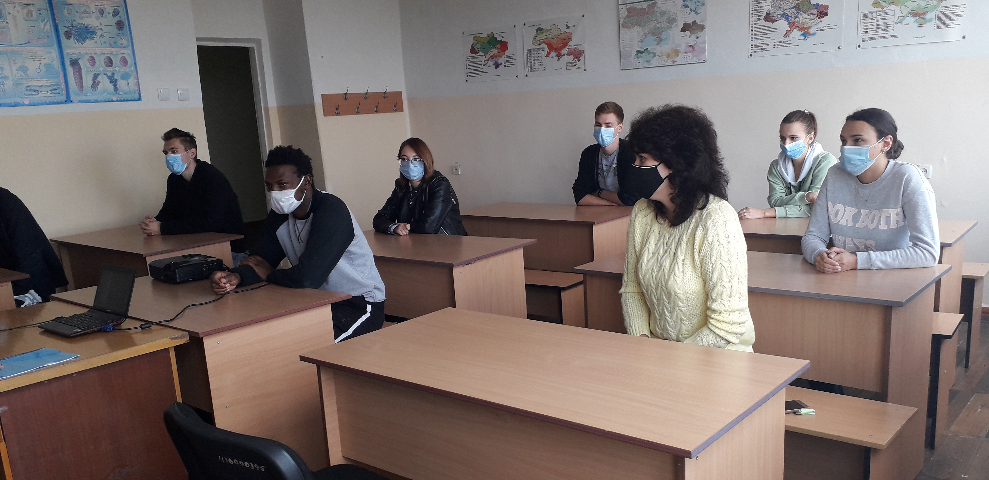 Особливості розміщення студентів в кабінеті зумовлені переглядом фото- та відеоматеріалів, що доповнюють розповідь доповідача, а також підготовлених слайдів за темою поточного заняття. Наведений формат проведення занять є традиційним для здобувачів вищої освіти СВО «Магістр» та проводиться на постійній основі із врахуванням особливостей розкладу та змісту робочої програми дисципліни.