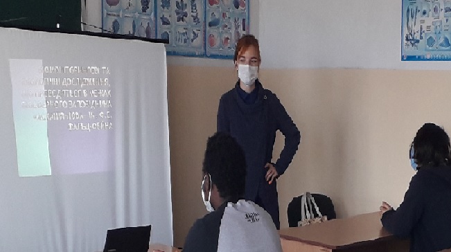 2) Проведення фахової консультації здобувача вищої освіти з питань особливості організації ботанічних досліджень за запитом керівника студентського наукового гуртка «Екодослід», що сформований для поглиблення знань з дисципліни «Методологія та організація наукових досліджень з основами інтелектуальної власності» та напрацювання навичок роботи у науково-дослідній сфері к.б.н., доц. Щербини Валентини Вікторівни. Відвідування установи відбувається у супроводі куратора академічної групи асистента кафедри Скиби Вікторії Павлівни. Попереднє узгодження заходу реалізовано за участі асистента кафедри Антоновського Олександра Григоровича. Консультування проводить молодший науковий співробітник науково-дослідного відділу Тетяна Анатолівна Ярова.