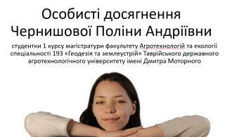 Щиро вітаємо Чернишову Поліну (здобувачку вищої освіти за другим (магістерським) рівнем вищої освіти спеціальності 193 Геодезія та землеустрій) з призначенням стипендії міського голови за наукові здобутки!