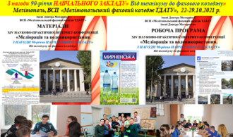Вже в чотирнадцяте з 22-29.10.2021 р., проведено XIV науково-практичну інтернет-конференцію «Меліорація та водовикористання. З НАГОДИ 90-річчя НАВЧАЛЬНОГО ЗАКЛАДУ» Від технікуму до фахового коледжу».