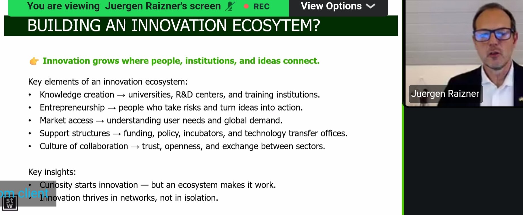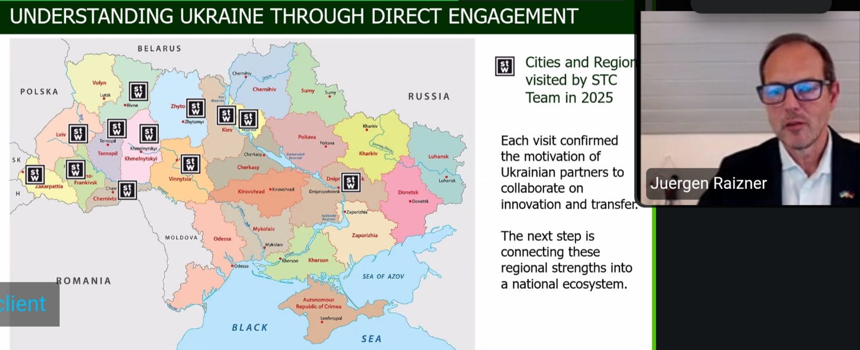 Спікером заходу виступив Юрген Райцнер — директор Steinbeis Enterprises, експерт із трансферу технологій і міжнародної кооперації. Під час семінару він розкрив ключові аспекти перетворення наукових розробок на бізнес-рішення та поділився кращими європейськими практиками у сфері інновацій.
