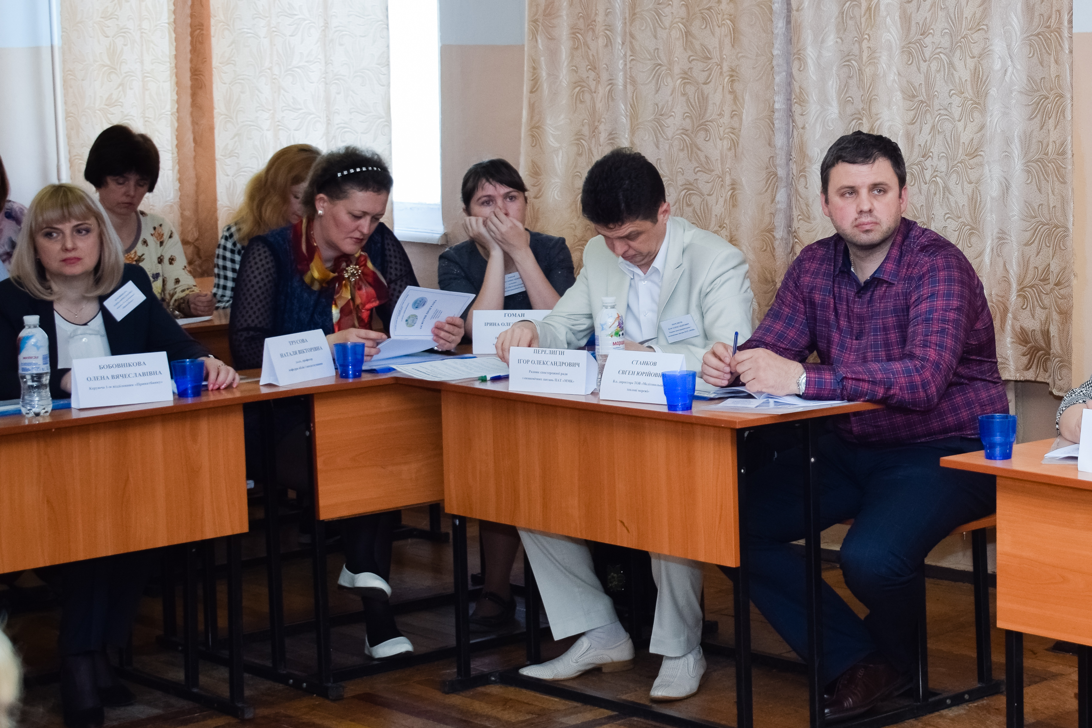 ПРИСУТНІ: перший проректор к.т.н., професор Скляр О.Г., декан факультету економіки та бізнесу, к.е.н, доцент Карман С.В., завідувач кафедри менеджменту, д.е.н., професор Нестеренко С.А., завідувач кафедри підприємництво, торгівля та біржова діяльність, к.е.н., доцент Болтянська Л.О., завідувач кафедри обліку та оподаткування, д.е.н., доцент Сокіл О.Г., завідувач кафедри цивільної безпеки, к.т.н., професор Рогач Ю.П., д.е.н., професор кафедри менеджменту Синяєва Л.В., д.е.н., доцент кафедри маркетингу Нехай В.В., к.е.н., доцент кафедри менеджменту, Агєєва І.В., к.е.н., доцент кафедри менеджменту, Бочарова Н.О., к.е.н., доцент кафедри менеджменту, Кравець О.В., доцент кафедри менеджменту, Плотніченко С.Р., к.е.н., доцент кафедри менеджменту, Розуменко С.М., к.е.н., доцент кафедри менеджменту, Сурженко Н.В., к.е.н., доцент кафедри менеджменту, Шевчук О.Ю.; к.е.н., доцент кафедри підприємництво, торгівля та біржова діяльність Тебенко В.М., к.е.н., доцент кафедри підприємництво, торгівля та біржова діяльність Лисак О.І., к.е.н., доцент кафедри економіки Почерніна Н.І., ст.. викл. кафедри економіки Васильченко О.О., к.е.н., доцент кафедри обліку і оподаткування Кучеркова С.А., к.е.н., доцент кафедри обліку і оподаткування Костякова А.А., к.психол.н., ст.. викл. кафедри суспільно-гуманітарних наук Єременко Л.В., ст.. викл. кафедри іноземних мов Мунтян С.Г.; заступник директора ТОВ «Мелітопольський завод підшипникового ковзання » Ковганко А.А., замісник директора з маркетингу ТОВ «Agua-STAR», директор ТОВ «Мелітопольський Автогідроагрегат» Ярчук В.А., директор зі збуту ТОВ «ІЗ Клінценбау» Бабернова М.В., заступник директора з комерційних питань та інвестицій комунального підприємства «Водоканал» Мелітопольської міської ради Станков Є.Ю., директор ТОВ РЗ «Сільмаш-Сервіс» Чулаков О.В.., заступник голови правління, радник спостережної ради з економічних питань ПАТ «Мелітопольський м’ясокомбінат» Перелигін І.О., директор ЧП «Октан Центр» Тяжкороб О.М., начальник Царічанського маслоцеха ПРАТ Комбінат «Придніпровський» Бойко Г.І., керівник відділу кадрів ВАТ «Мелітопольський хлібокомбінат» Немикіна О.В., головний економіст ПрАТ «Мелітопольський олійноекстракційний завод» Гомон І.О., менеджер з логістики копанії «АК» Редько Л.І.; магістр спеціальності «менеджмент» студент 11-МБ Мн Смелянський Д.О.; бакалаври спеціальності «менеджмент» студенти 41-Мн: Жук Р.Р., Шило А.С..