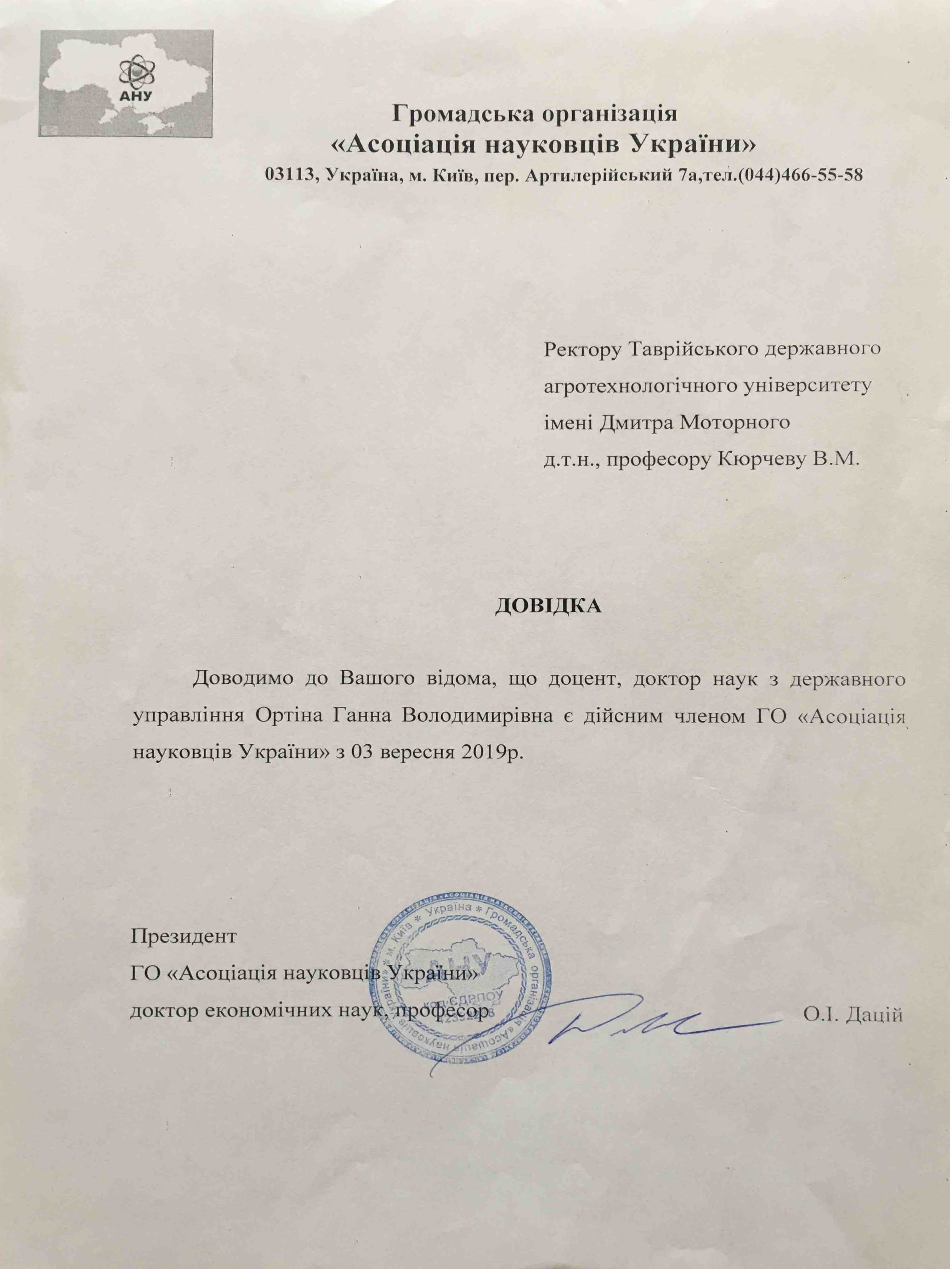 223-239 https://doi.org/10.35588/pxe7k028 https://revistas.usach.cl/ojs/index.php/rivar/article/view/6493/26005541 2. K.M. Didur, H.O. Kundieieva, G.V. Ortina, FORMATION OF FOOD SUPPLY OF THE AGRARIAN SECTOR OF UKRAINE ON THE BASIS OF RESTORATION OF THE DEVELOPMENT OF RURAL AREAS Rev. Iberoam. Vitic. Agroind. Rural., 12, 223-239 (2025). DOI: 10.35588/pxe7k028. 3. Economic efficiency of public administration in the field of digital developmentOrtina, G., Zayats, D., Akimova, L., Akimov, O., Karpa, M. Economic Affairs (New Delhi)., 2023, 68(3), 1543–1553 (Scopus). 4. Optimization of production parameters of agricultural enterprises Vinichenko, I., Polehenka, M., Ortina, G., Kazarian, H., Vinogradchyi, V. IOP Conference Series: Earth and Environmental, 2023, 1126(1), 012022 (Scopus). 5. Digitalization and public marketing of environmental safety processes and recreation development Ortina G., Kravets O., Plotnichenko S. IOP Conf. Series: Earth and Environmental Science 937 (2021) 042033 doi:10.1088/1755-1315/937/4/042033 (Scopus). 6. Estimation of the domestic agricultural sector potential for the growth of energy cultures for bioenergy fuel production. Ortina G., Larina, Y., Galchynska, J.,Kucheruk, P. Agricultural Engineering., 2021, 25(1), 73–82 (Scopus). " п. 2 Авторське свідоцтво 1. Свідоцтво авторське право 131400 2. Свідоцтво авторське право 130110 3. Свідоцтво авторське право 130131 4. Свідоцтво авторське право 132576 5. Свідоцтво авторське право 133464 п. 3 п. 4 п. 5 п. 6 п. 7 "Апостол Олександр Іванович Торічний Вадим Олександрович Громико Олена Ігорівна Запорожець Тетяна Володимирівна, Лі Цзіньпін, Гвоздя Євгена Вікторовича п. 8 п. 9 п. 10 п. 11 "Новобогданівська сільська рада КУ ""Агенція розвитку Мелітополя"" п. 12 "Нехай В.В., Ортіна Г.В., Плотніченко С.Р., Агєєва І.В., Вороніна Ю.Є. Основні акценти методики викладання дисциплін зовнішньоекономічного напрямку. Удосконалення освітньо-виховного процесу в закладі вищої освіти: збірник науково-методичних праць / Таврійський державний агротехнологічний університет імені Дмитра Моторного. Запоріжжя : ТДАТУ, 2024. Вип. 27. С. 279-287 Агєєва І.В., Ортіна Г.В., Нехай В.В., Плотніченко С.Р., Вороніна Ю.Є. Вплив цифровізації на трансформацію неформальної освіти в економічній сфері. Удосконалення освітньо-виховного процесу в закладі вищої освіти: збірник науково-методичних праць / Таврійський державний агротехнологічний університет імені Дмитра Моторного. Запоріжжя : ТДАТУ, 2024. Вип. 27. С. 21-34 Вороніна Ю.Є., Нехай В.В., Ортіна Г.В., Плотніченко С.Р., Агєєва І.В. Підходи до патріотичного виховання в освітньому процесі. Удосконалення освітньо-виховного процесу в закладі вищої освіти: збірник науково-методичних праць / Таврійський державний агротехнологічний університет імені Дмитра Моторного. Запоріжжя : ТДАТУ, 2024. Вип. 27. С. 68-74 Ортіна Г.В., Нехай В.В., Агєєва І.В., Плотніченко С.Р., Вороніна Ю.Є. Формування методологічного підходу до відтворення інтелектуального капиталу. Удосконалення освітньо-виховного процесу в закладі вищої освіти: збірник науково-методичних праць / Таврійський державний агротехнологічний університет імені Дмитра Моторного. Запоріжжя : ТДАТУ, 2024. Вип. 27. С. 287-294 Плотніченко С.Р., Агєєва І.В., ВоронінаЮ.Є., Нехай В.В., Ортіна Г.В. Основи кейс-технології в освітньому процесі. Удосконалення освітньо-виховного процесу в закладі вищої освіти: збірник науково-методичних праць / Таврійський державний агротехнологічний університет імені Дмитра Моторного. Запоріжжя : ТДАТУ, 2024. Вип. 27. С. 307-313 п. 13 п. 14 Науковий гурток п. 15 п. 16 п. 17 п. 18 п. 19 Асоціація Науковців України п. 20 Депутатка Мелітопольської міської ради VIII скликання 38.1 Наявність не менше п’яти публікацій у періодичних наукових виданнях, що включені до переліку фахових видань України, до наукометричних баз, зокрема Scopus, Web of Science Core Collection