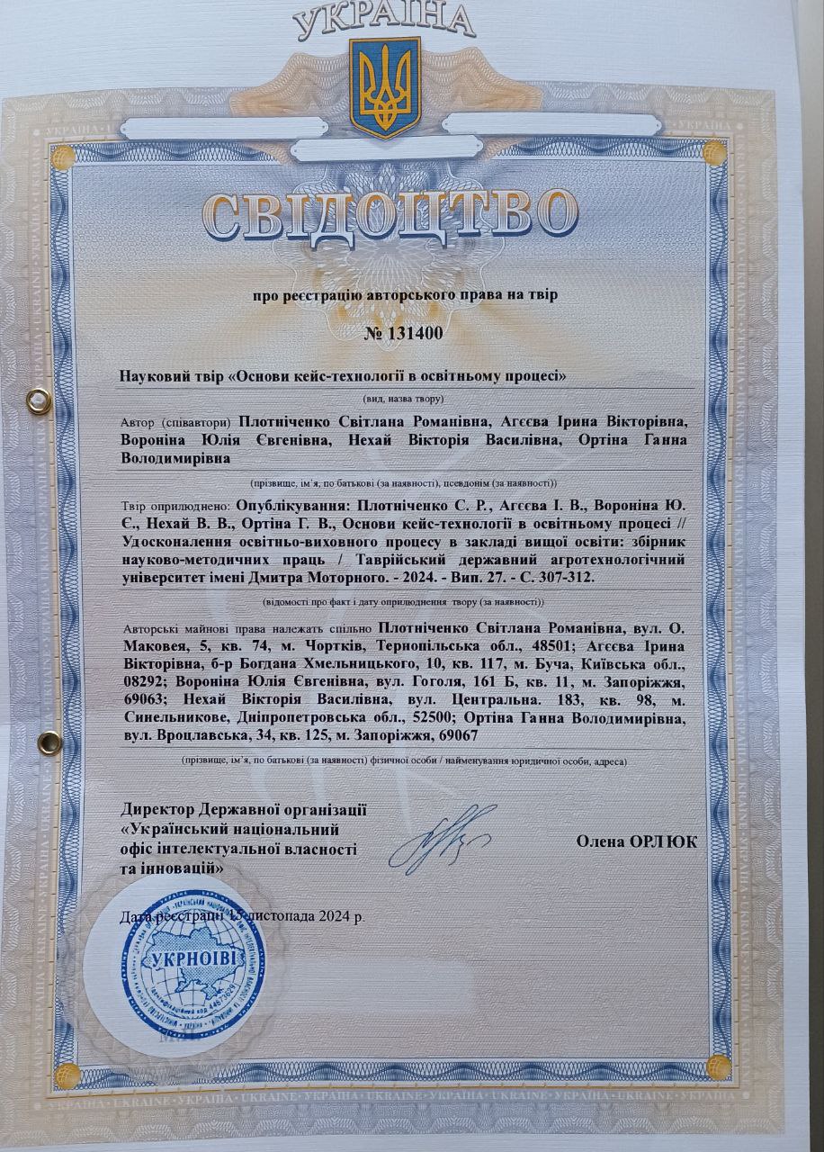 Email: svitlana.plotnichenko@tsatu.edu.ua