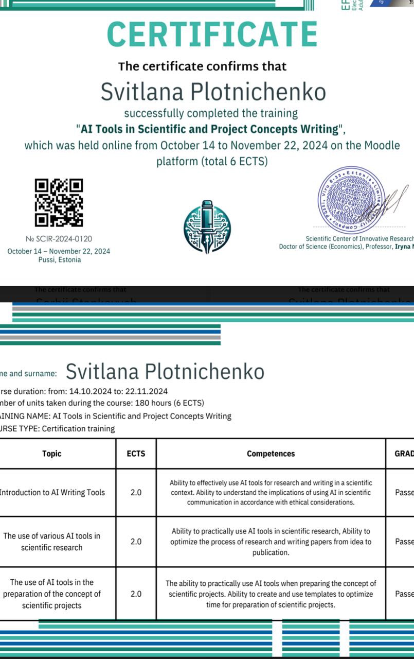 Сертифікат 22 листопада 2024 р "AI Tools in scientific and project concepts writing"