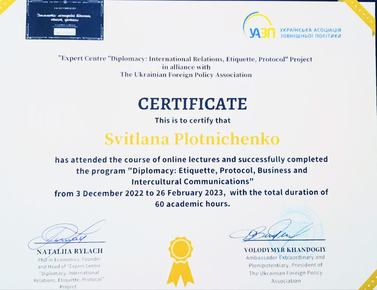 Сертифікат 24 червня 2024 р has participated in the online events series "Woman in Diplomacy: a Challenge or a Mission?"