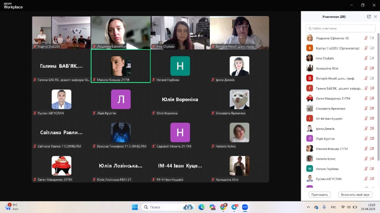25 квітня 2025 року викладачі та здобувачі кафедри менеджменту та публічного адміністрування взяли участь у тренінгу «Управління командами в IТ:процеси, адаптація до змін та стратегічний розвиток» який був організований школою лідерів ефективного управління та школою «Кар’єрна траєкторія студента на ринку праці», тренером виступив Остап Тимкін – керівник відділу IТ-компанії InForce
