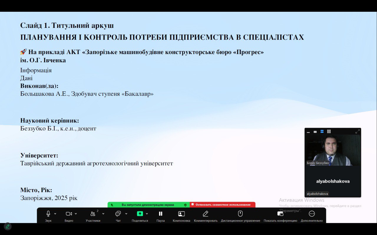 У Таврійському державному агротехнологічному університеті імені Дмитра Моторного відбувся захист курсових робіт з дисципліни «Планування і контроль на підприємстві» здобувачів вищої освіти 4 курсу спеціальності «Менеджмент».