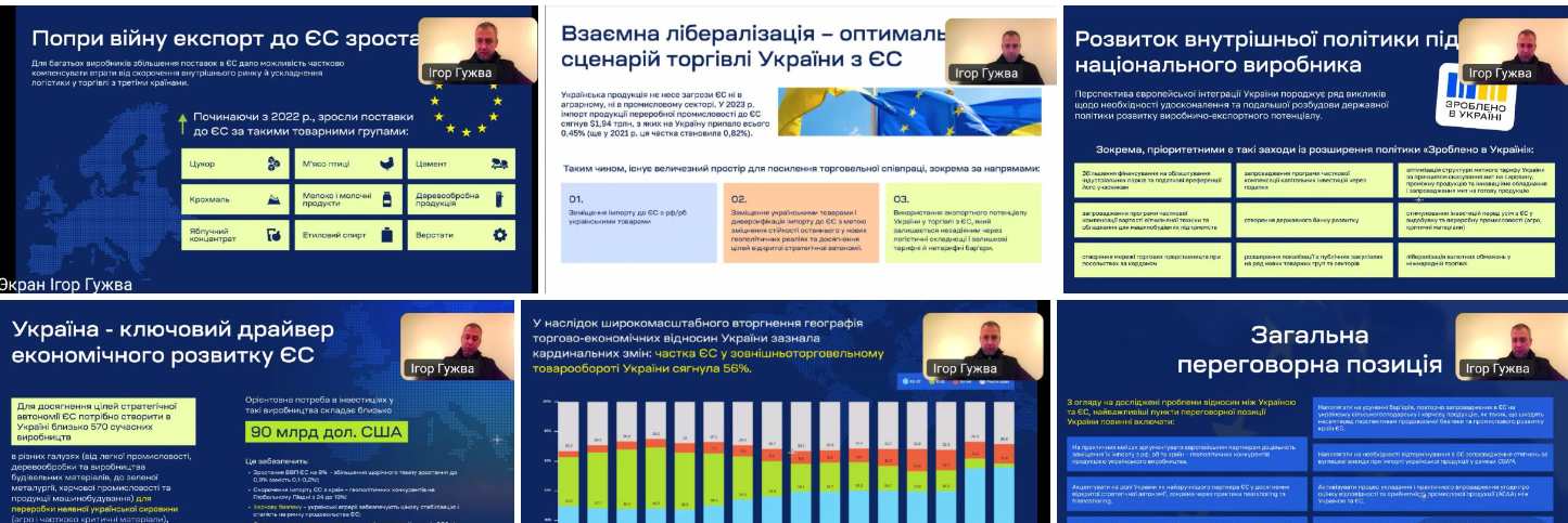 Спікером семінару виступив Ігор Гужва — в. о. директора Державного науково-дослідного Інституту інформатизації та моделювання економіки, радник Комітету Верховної Ради України з питань економічного розвитку. Під час онлайн-лекції він представив ключові механізми європейської інтеграції та пояснив, які можливості відкриває для України співпраця з ЄС.