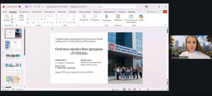 27 листопада 2025 року гаранти ОП «Туризм» бакалаврського та магістерського рівнів Таврійський державний агротехнологічний університет долучилися до міжнародного академічного заходу, ініційованого кафедрою готельно-ресторанної справи та туризму Національного університету біоресурсів і природокористування України. Нетворкінгова сесія «Практико-орієнтована підготовка фахівців галузі знань J «Транспорт та послуги»: реалії та виклики» відбулася онлайн у синхронному режимі через канал прямої взаємодії на платформі Zoom.