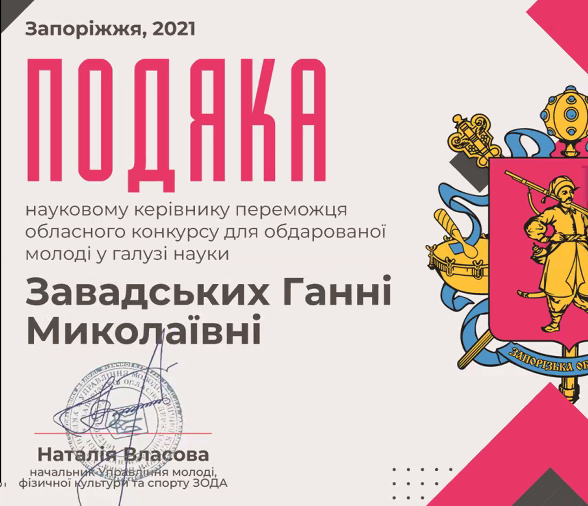 Подяка. Запорізька обласна державна адміністрація. 2021 р.