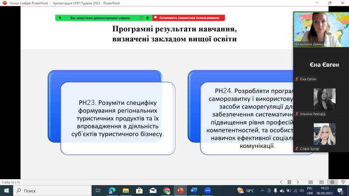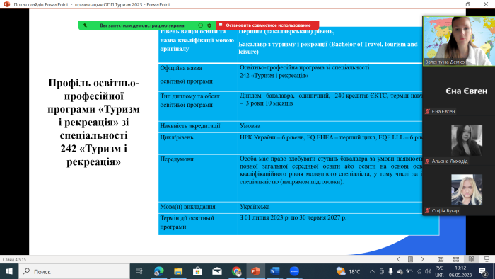 Презентацію програми першого бакалаврського рівня підготовки провела гарант ОПП «Туризм» к.е.н., доцент Валентина ДЕМКО.