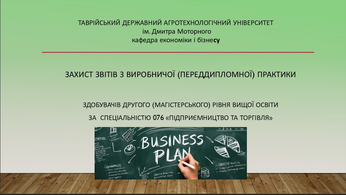 ЗАХИСТ ЗВІТІВ З ВИРОБНИЧОЇ ПЕРЕДДИПЛОМНОЇ ПРАКТИКИ ЗДОБУВАЧІВ СПЕЦІАЛЬНОСТІ 076 “ПІДПРИЄМНИЦТВО ТА ТОРГІВЛЯ”
