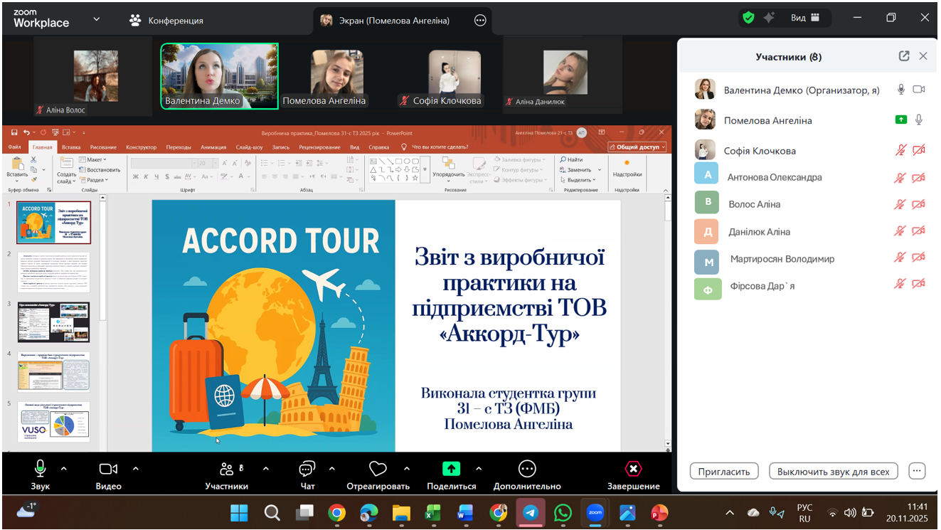 ЗДОБУВАЧІ СПЕЦІАЛЬНОСТІ «ТУРИЗМ ТА РЕКРЕАЦІЯ» УСПІШНО ПРОЗВІТУВАЛИ ПРО ПРОХОДЖЕННЯ ВИРОБНИЧОЇ (ПЕРЕДДИПЛОМНОЇ) ПРАКТИКИ