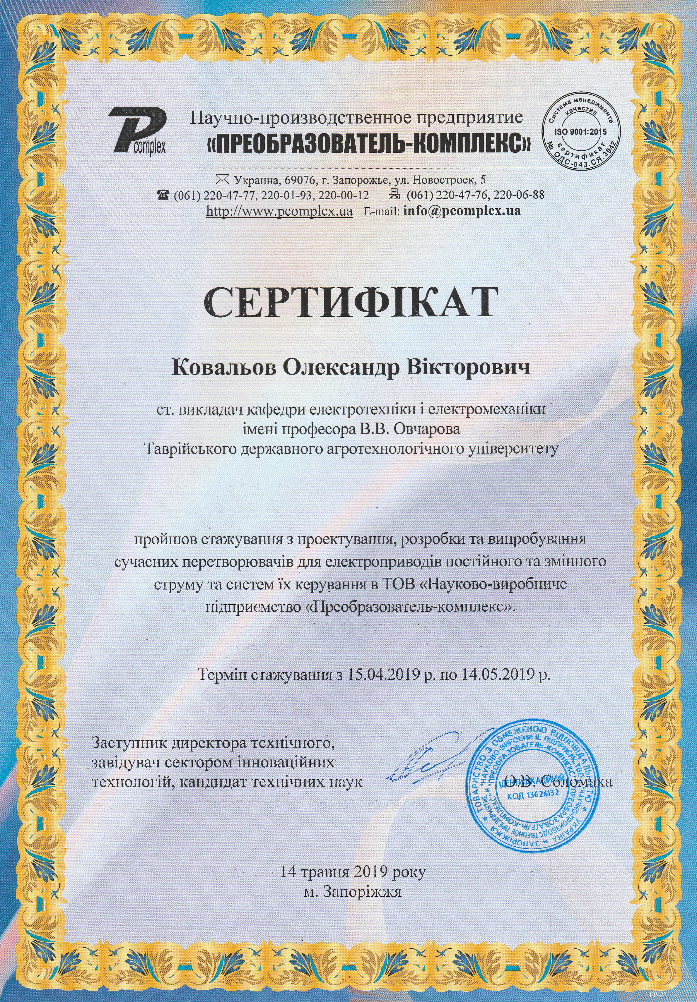 Виробниче стажування на підприємстві ТОВ «НВП «Преобразователь-комплекс»
