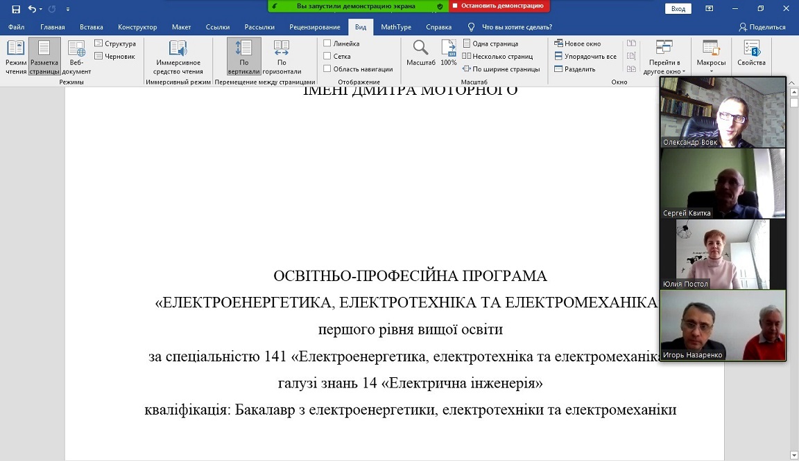 Члени кафедри – учасники засідання робочої групи освітньо-професійної програми «Електроенергетика, електротехніка та електромеханіка» першого рівня вищої освіти