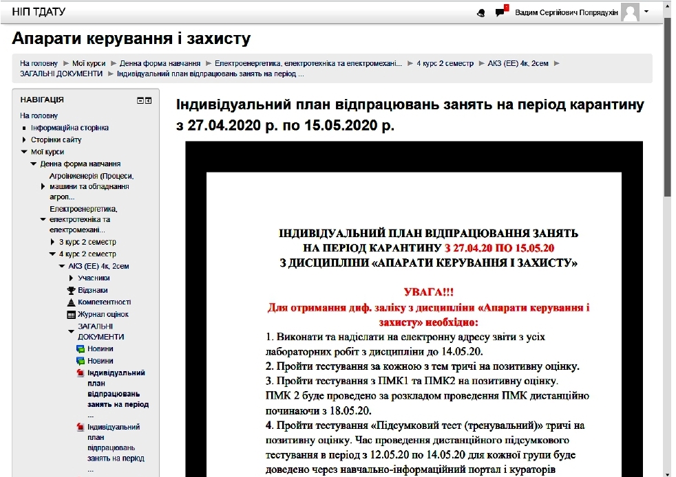 Дистанційне навчання та консультування студентів з дисципліни АКЗ