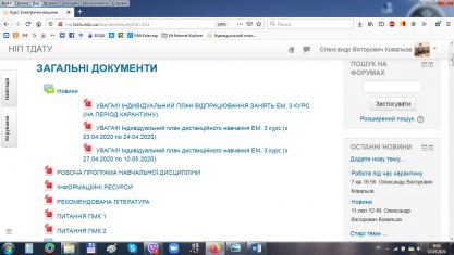 Ведучий викладач Ковальов О.В. на Навчально-інформаційний портал Таврійського державного агротехнологічного університету імені Дмитра Моторного викладає Індивідуальний план дистанційного навчання з дисципліни на кожний період карантину. В ньому зазначені всі види робіт, які повинні виконати студенти в визначений термін та вихідні данні до виконання кожної лабораторної та практичної роботи.
