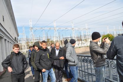 Метою поїздки стало знайомство студентів з потужним енергетичним підприємством України. Дніпровська гідроелектростанція, або ДніпроГЕС – легендарна гігантська гребля, яка знаходиться в самому серці міста Запоріжжя. Це п’ятий ступінь нижчої частини каскаду гідроелектростанцій на річці Дніпро. Утворює найстаріше на Дніпрі Дніпровське водосховище. Вид на ДніпроГЕС викликав у нас неабияке захоплення: довжина споруди 1300 метрів, висота – 60. Сьогодні Дніпровська гідроелектростанція – це центр міського пейзажу, історико-архітектурний пам’ятник і приваблива для зору споруда на фоні легендарного острову Хортиця.