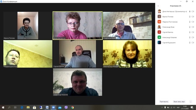 Чергове засідання кафедри електротехніки і електромеханіки імені професора В.В. Овчарова відбулося 27 листопада 2020 року у ZOOM в зв’язку з дистанційною формою навчання в Таврійському державному агротехнологічному університеті імені Дмитра Моторного з урахуванням стану епідемічної ситуації щодо захворюваності на респіраторну хворобу COVID-19 та з метою запобігання її поширення в університеті.