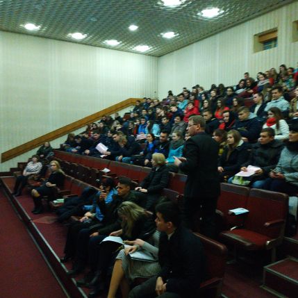 Вадим Сергійович і Олександр Вікторович докладно розповіли про університет, виховну роботу, особливості навчання, закордонні практики, військову підготовку, перспективи працевлаштування. Усі бажаючі отримали друковану рекламно-інформаційну продукцію (буклети про університет та спеціальності, програми закордонних практик тощо).