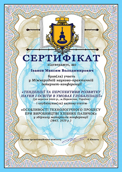 Молоді науковці взяли участь у Міжнародній науково-практичній інтернет-конференції (м. Переяслав)