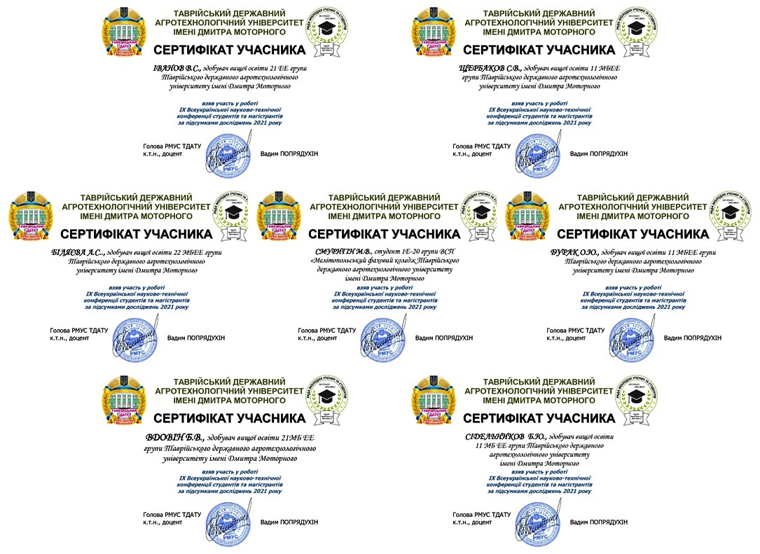 Підсумки наукових досліджень 2021: ІХ Всеукраїнська науково-технічна конференція здобувачів вищої освіти ТДАТУ, секція «Електротехніка і електромеханіка»