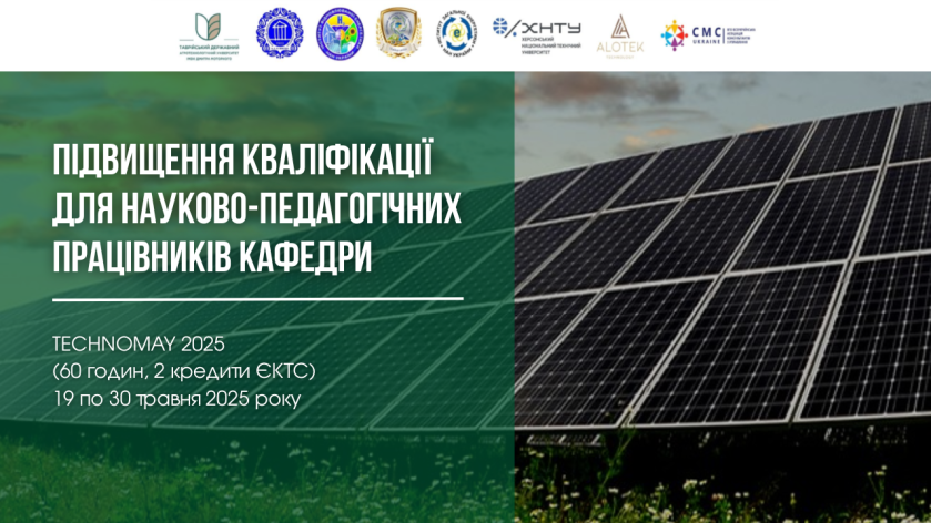 Заняття з підвищення кваліфікації у дистанційному форматі для науково-педагогічних працівників закладів вищої освіти, аспірантів і фахівців-практиків на тему «Трансформація енергетичних систем у контексті сталого розвитку» TECHNOMAY 2025 (60 годин, 2 кредити ЄКТС) відбулися з 19 по 30 травня 2025 року.