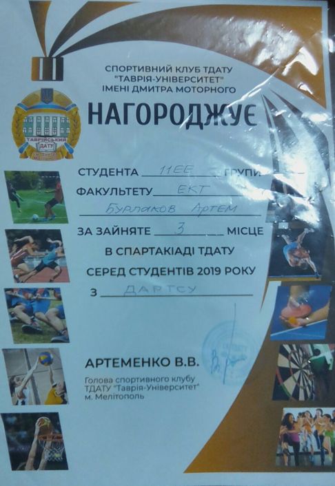 Протягом листопада 2019 року студенти 11ЕЕ групи приймали участь у спартакіаді ТДАТУ серед студентів в різних видах спорту, а саме: