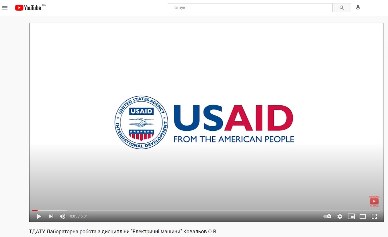 Створення навчальних матеріалів з дисципліни «Електричні машини» в рамках Проєкту USAID «Економічна підтримка Східної України»