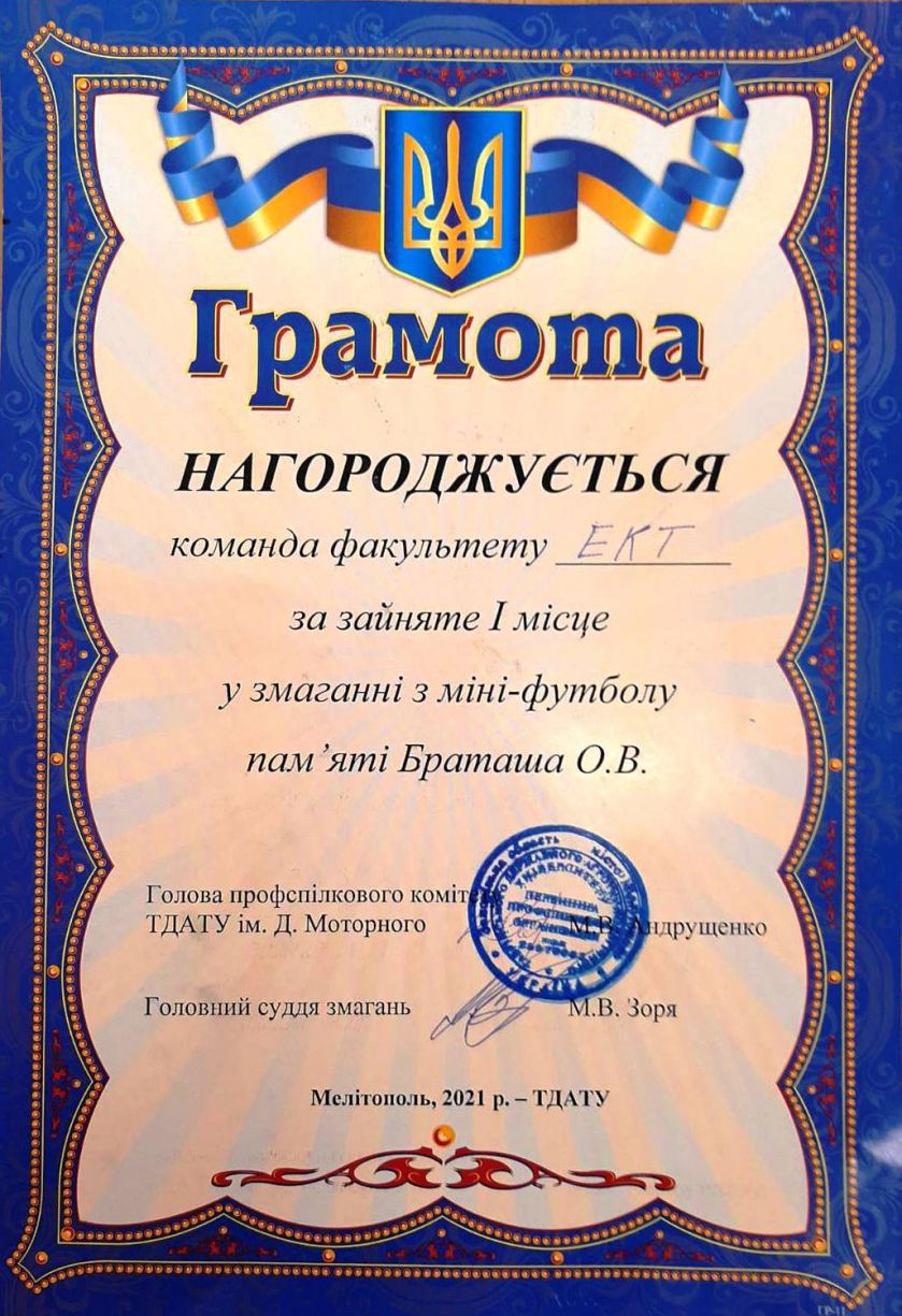 З 4 жовтня по 6 жовтня 2021 року в Таврійському державному агротехнологічному університеті імені Дмитра Моторного відбувся турнір з міні-футболу з нагоди вшанування пам’яті керівника футбольної команди ТДАТУ, викладача кафедри українознавства Олександра Васильовича Браташа. Місцем проведення міні-футболу традиційно став спортивний майданчик біля кафедри фізичного виховання та спорту ТДАТУ.