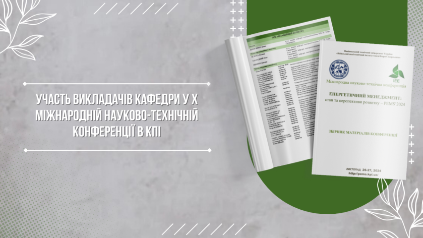 26-27 листопада 2024 р. у Національному технічному університеті України «Київський політехнічний інститут імені Ігоря Сікорського відбулася Х Міжнародна науково-практична та навчально-методична конференція «ЕНЕРГЕТИЧНИЙ МЕНЕДЖМЕНТ: стан та перспективи розвитку – PEMS’24». Конференція проводилася за підтримки Міністерства освіти і науки України, Міністерства енергетики України, Державного агентства з енергоефективності та енергозбереження України, Науково-технічної спілки енергетиків та електротехніків України, і була присвячена науковим, технічним, економічним і навчально-методичним проблемам побудови ефективних систем енергетичного менеджменту, раціонального використання відновлювальних і невідновлювальних енергоресурсів, які дають змогу підвищити енергетичну ефективність функціонування енергетичної галузі та забезпечити енергетичну безпеку України, реалізувати політику енергоефективності й енергозбереження підприємств, організацій та установ.