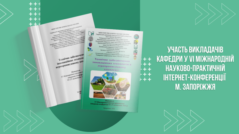 Викладачі взяли участь у Міжнародній науковій Інтернет-конференції «Технічне забезпечення інноваційних технологій в агропромисловому комплексі: матеріали», яка відбулася 01-25.11 2024 р. на базі кафедри експлуатації та технічного сервісу машин ТДАТУ у м. Запоріжжя.