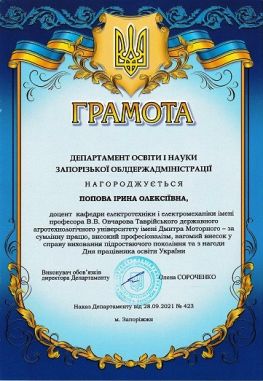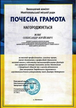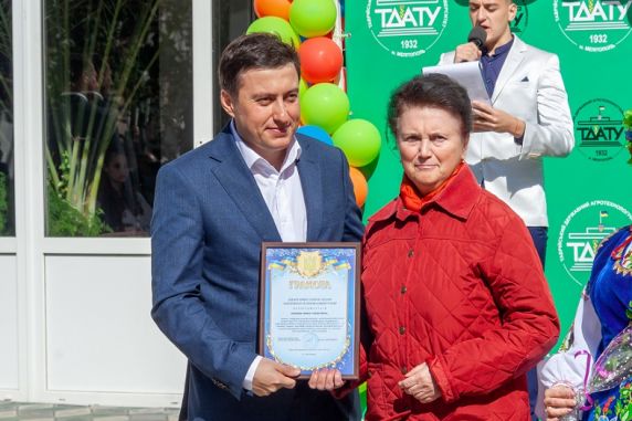 Привітати освітян ТДАТУ завітали почесні гості: голова Мелітопольської районної ради Сергій Прийма і заступник мера міста Мелітополя Михайло Семікін. Вони виконали приємну місію, вручивши заслужені нагороди науково-педагогічним працівникам. За високий професіоналізм, сумлінну працю, високі досягнення у професійній діяльності та вагомий внесок у підготовку висококваліфікованих фахівців для аграрного сектору економіки міста Мелітополя і Запорізької області Почесною грамотою виконавчого комітету Мелітопольської міської ради Запорізької області був нагороджений доцент кафедри ЕТЕМ Олександр Вовк. Ірина Попова, доцент кафедри електротехніки і електромеханіки імені професора В.В. Овчарова, отримала Грамоту Департаменту освіти і науки Запорізької обласної державної адміністрації за вагомий внесок у підготовку висококваліфікованих фахівців, розвиток вітчизняної науки та значні досягнення в реалізації державної політики в галузі національної освіти, навчанні та вихованні студентської молоді та з нагоди Дня працівника освіти України.