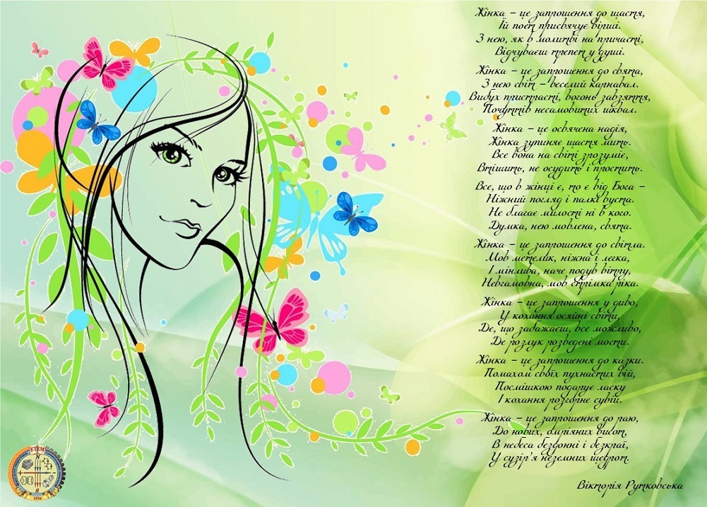 На самому початку весни, 8 березня, до нас приходить одне з найніжніших і теплих свят року – жіноче весняне свято: Міжнародний жіночий день. Саме жінка втілює все те, що робить прекрасним і щасливим весь світ: ніжність перших зелених паростків і веселий щебет птахів, легкий подих вітерця, що наповнює повітря теплими ароматами перших квітів, ласку сонячних промінців і яскраве сяйво зірок. Допоки існує на цьому світі Жінка, відчуття свята і радості, невпинності життя буде витати в повітрі, пронизуючи все навколо.