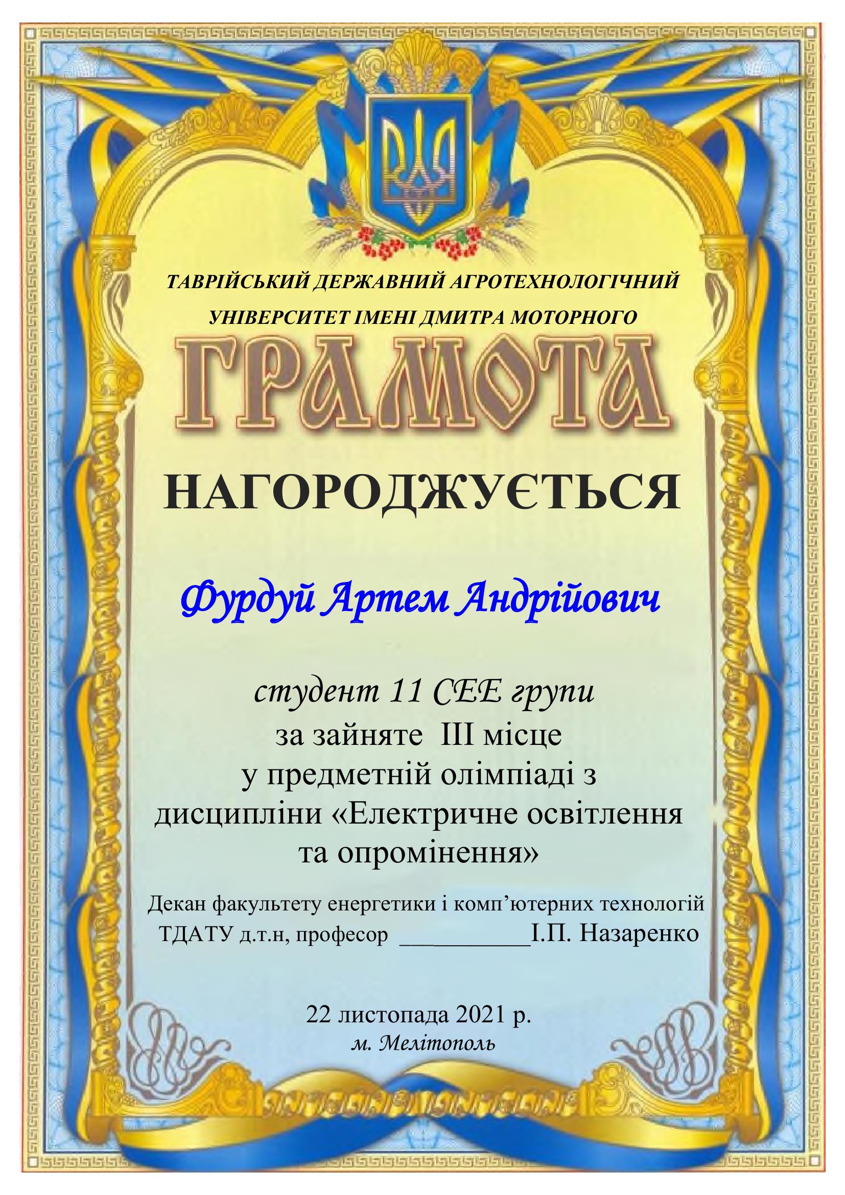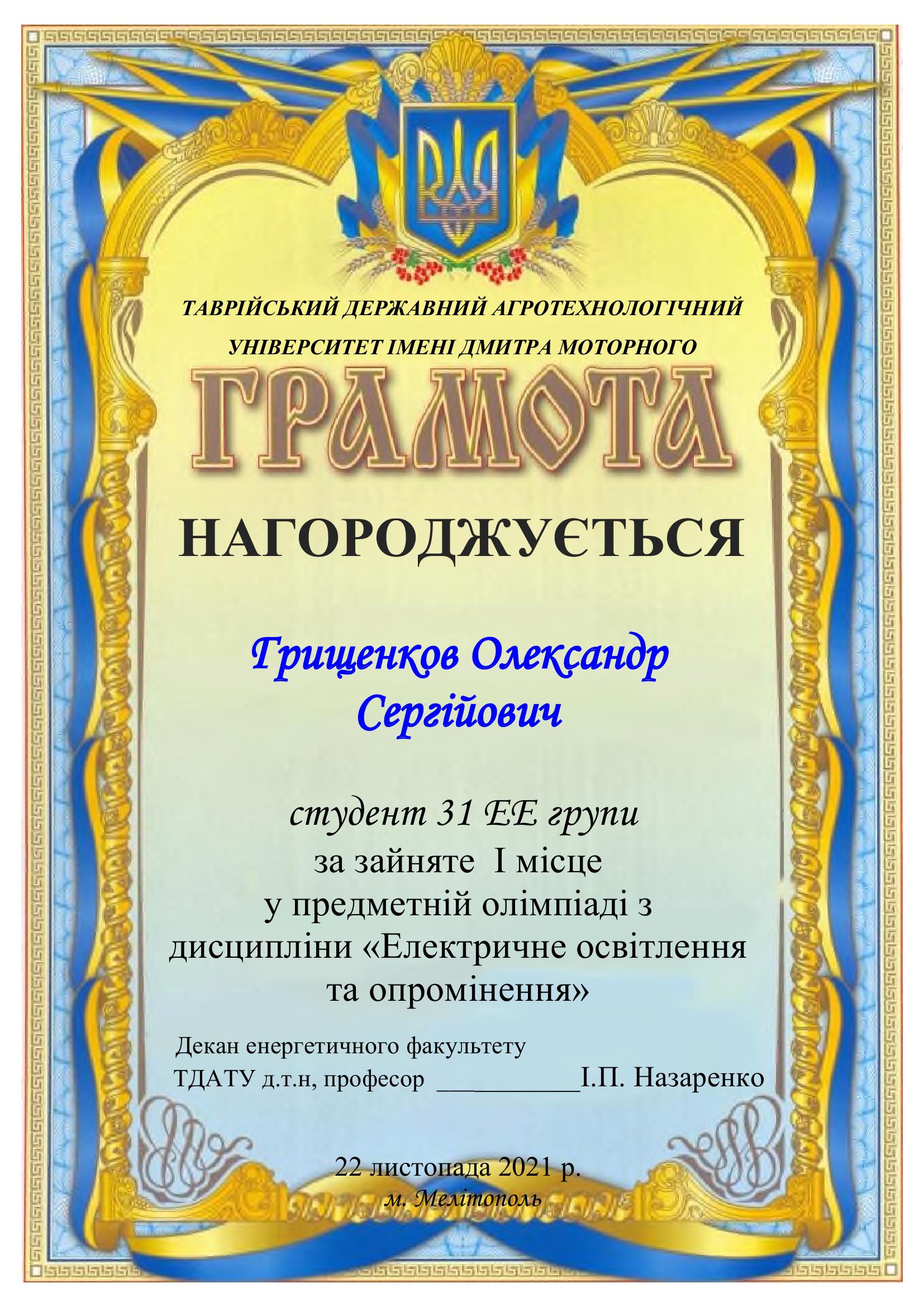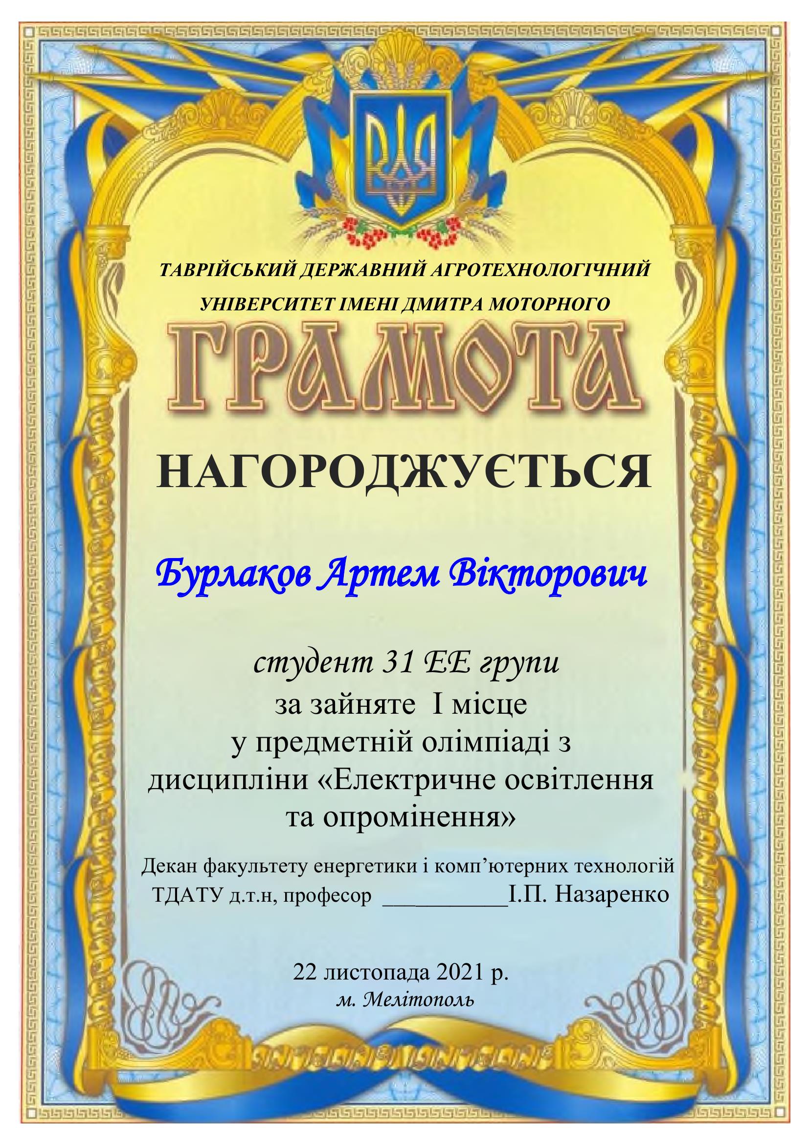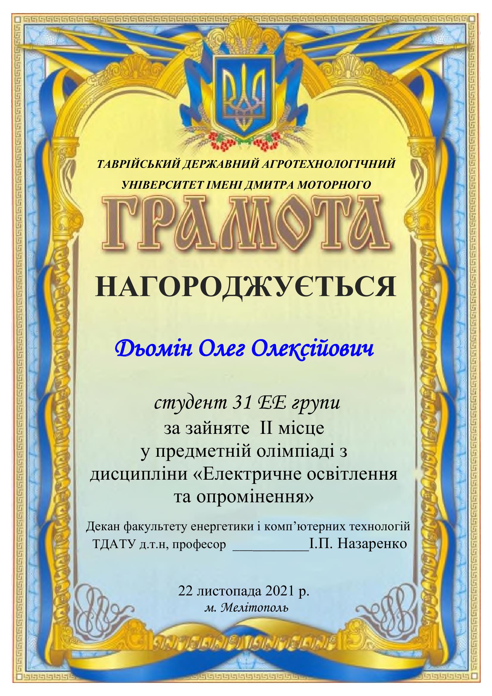 22.11.21 року, відбулась олімпіада з дисципліни «Електричне освітлення та опромінення» в якій прийняли участь 35 студентів з 31ЕЕ, 11СЕЕ і 12СЕЕ груп. Для проведення предметної олімпіади на кафедрі створена комісія у складі: ведучий викладач з дисципліни доц. Кушлик Р.В., доц. Борохов І.В., доц. Гулевський В.Б. Перед початком роботи викладачі привітали всіх учасників олімпіади і побажали студентам успіхів у олімпіаді і подальшому навчанні.