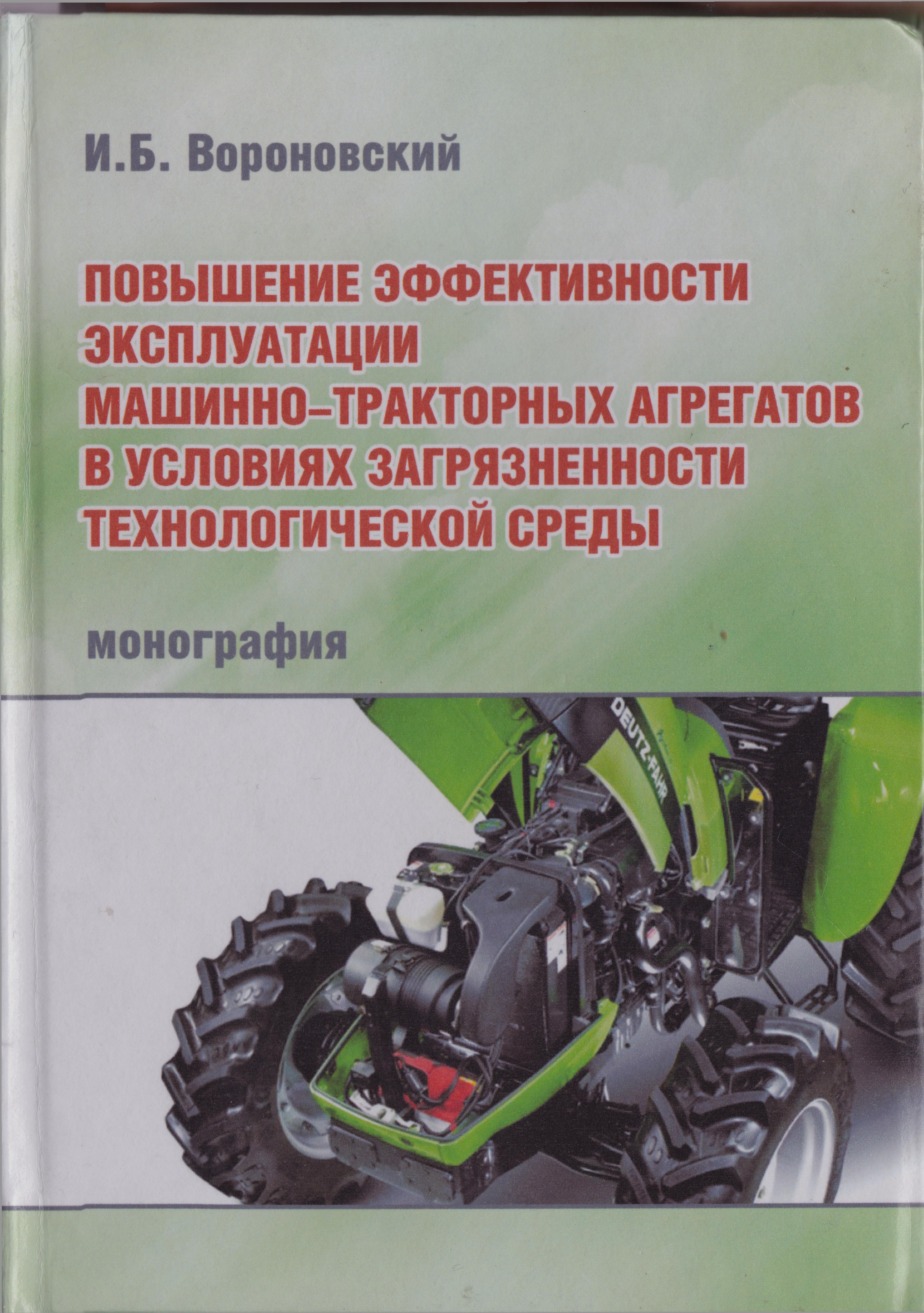 И.Б. Вороновский Повышение эффективности эксплуатации машинно-тракторных агрегатов в условиях загрязненности технологической среды. / Монография. Мелитополь 2016, 127 с.