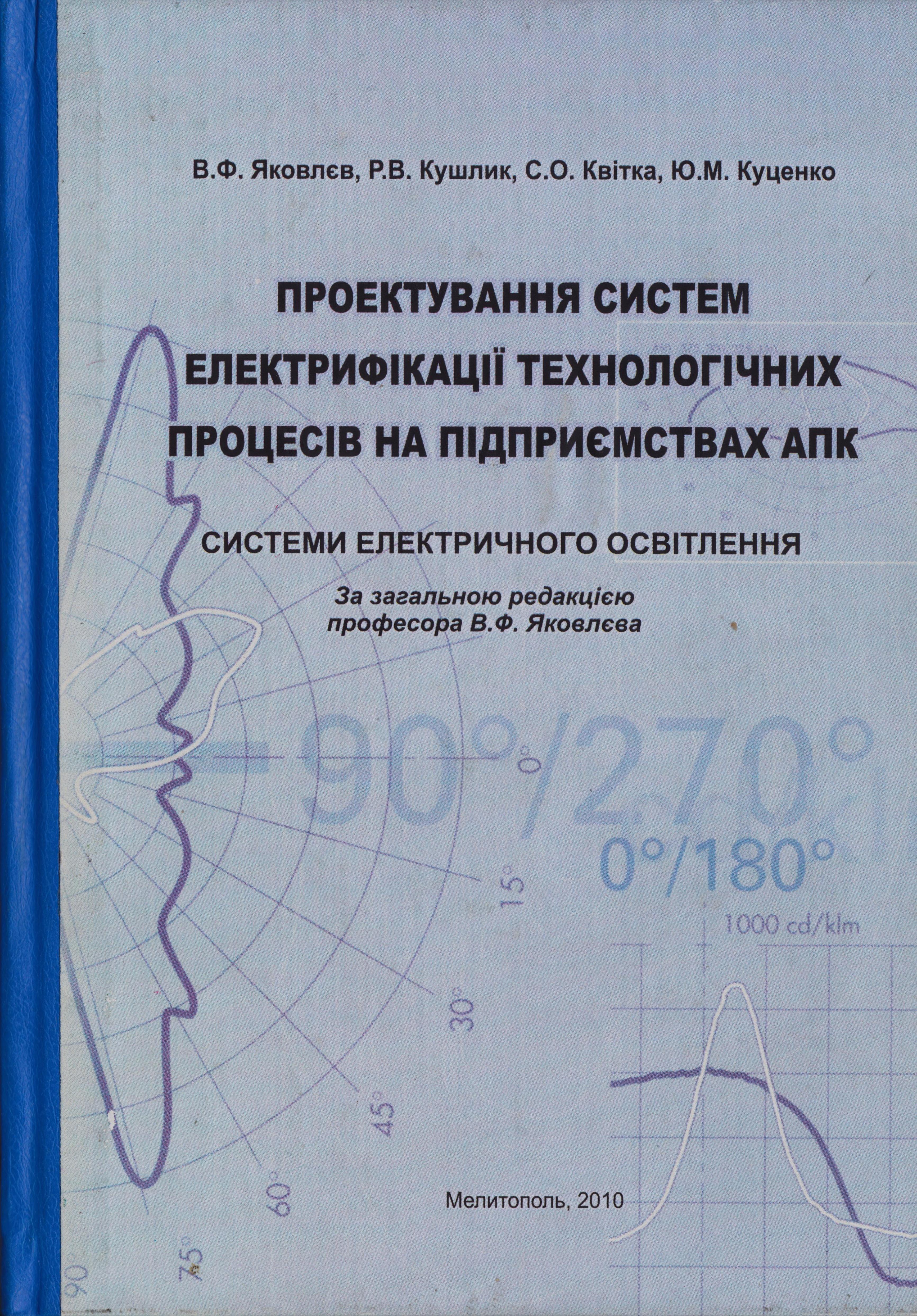 Проектування систем електрифікації технологічних процесів на підприємствах АПК. Системи електричного освітлення: Навчальний посібник / В.Ф. Яковлєв, Р.В. Кушлик, С.О. Квітка, Ю.М. Куценко. За заг. ред. проф. Яковлєва В.Ф. – Мелітополь, 2010.-106 с.